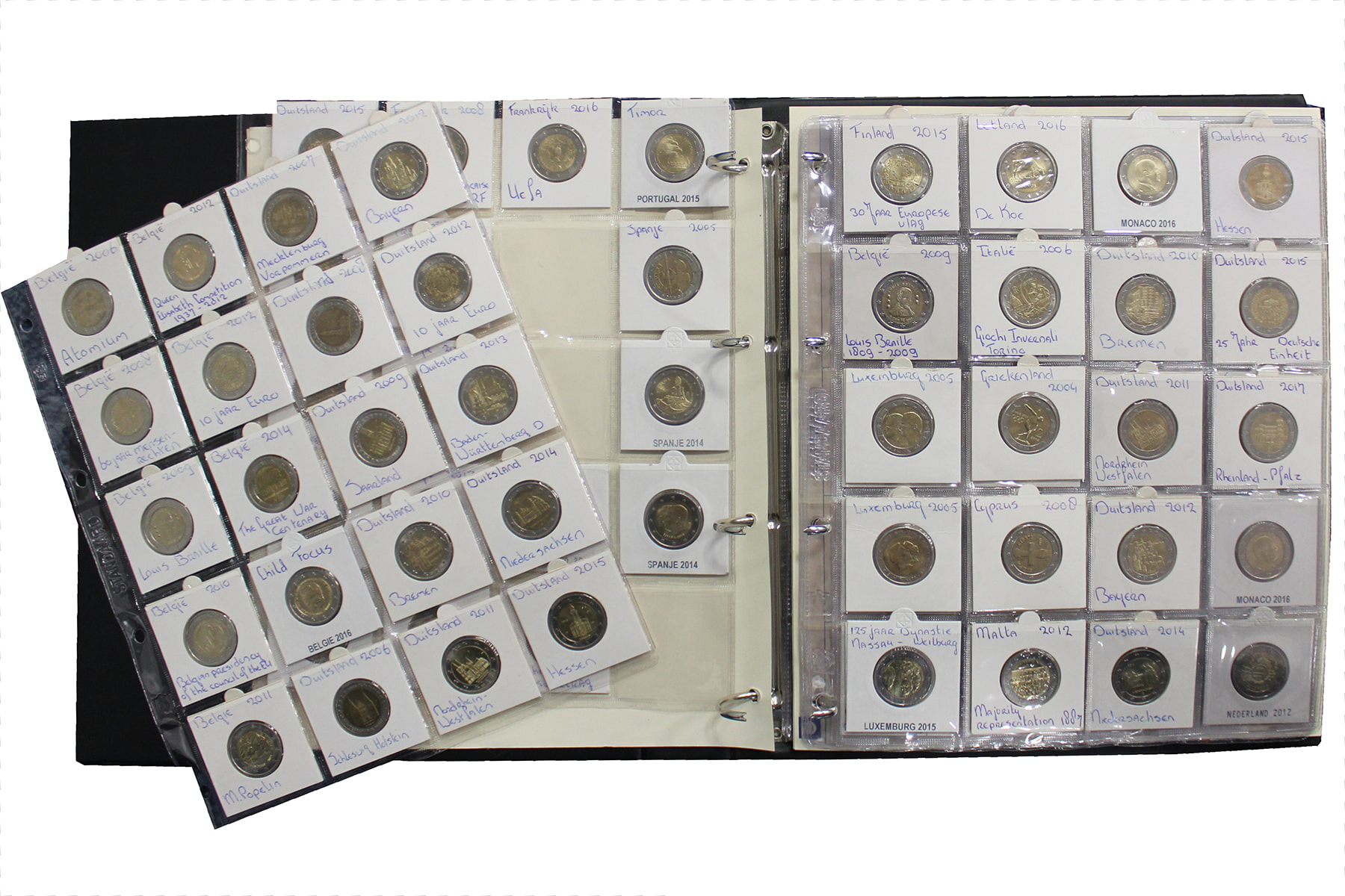 Twee HB-albums met voornamelijk nominaal eurogeld met veel 2 eurostukken. Dat wordt tellen en rekenen geblazen!