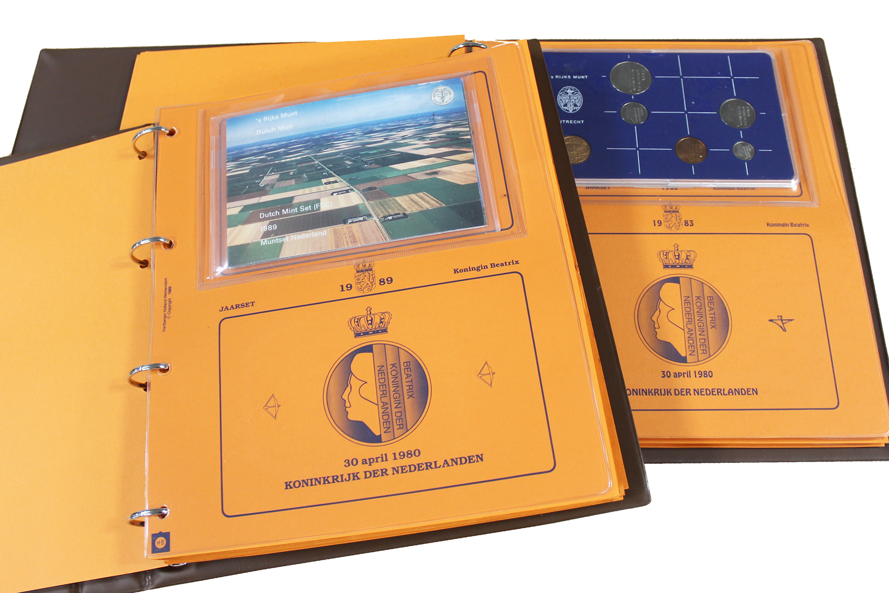 Twee bruine HB-albums met collectie FDC-muntsetjes van 1976 t/m 1996. Totaal ruim 20 sets, geen dubbele.