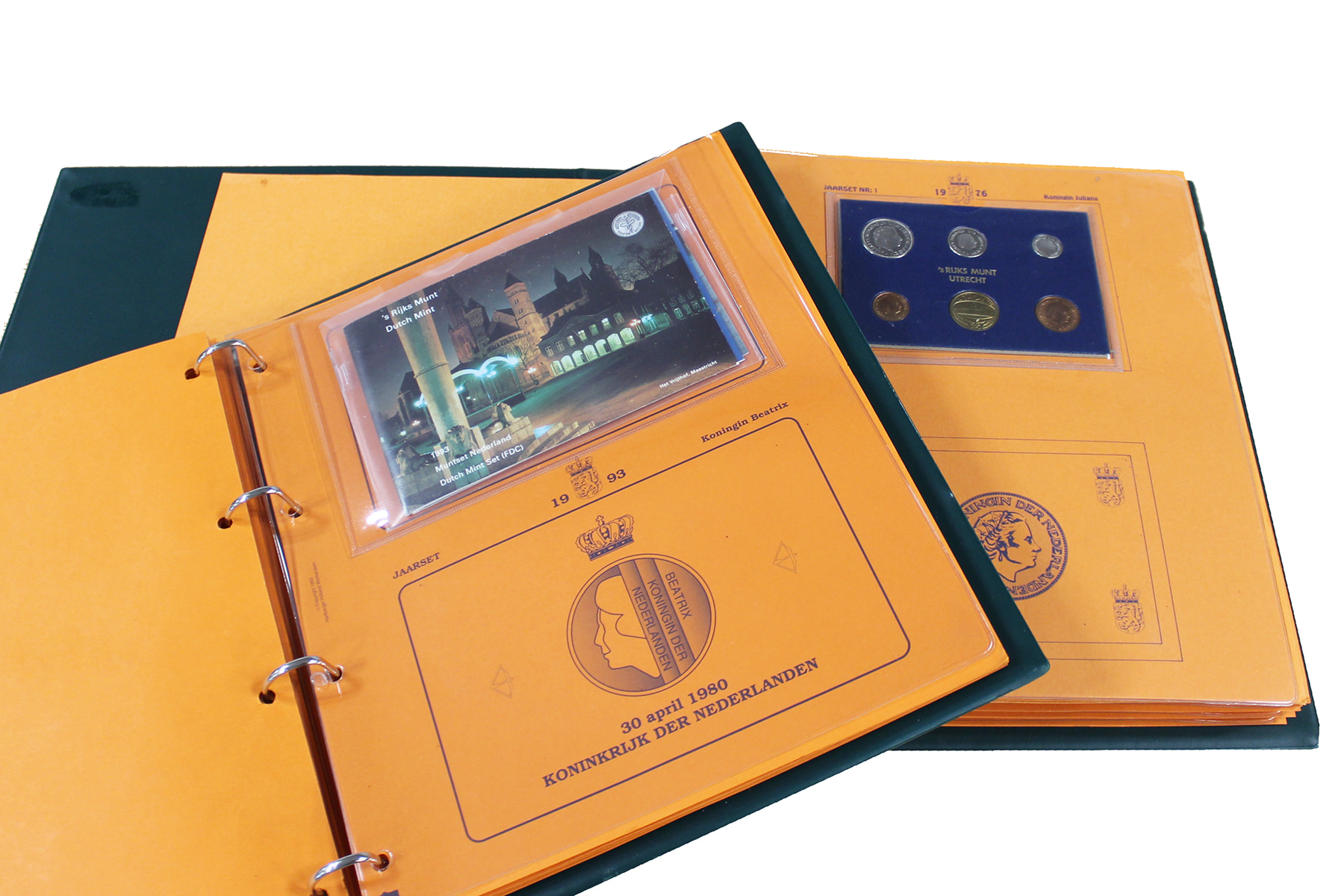 Twee groene HB-albums met collectie FDC-muntsetjes van 1976 t/m 1996. Totaal ruim 20 sets, geen dubbele.