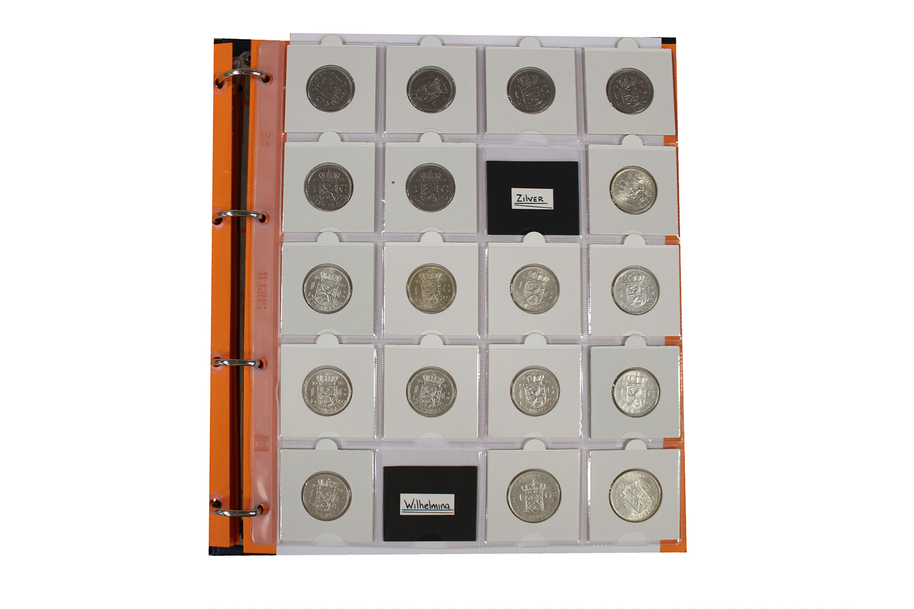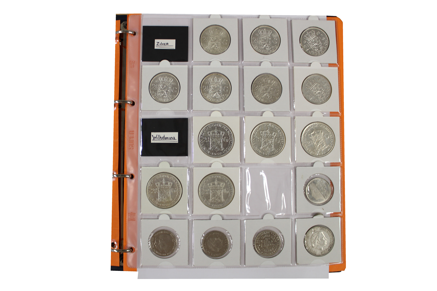 Blauw Importa-album (247) Wilhelmina t/m Beatrix. Geen bijzondere jaartallen of kwaliteiten. Wel veel zilver (ca. 327 gram netto).