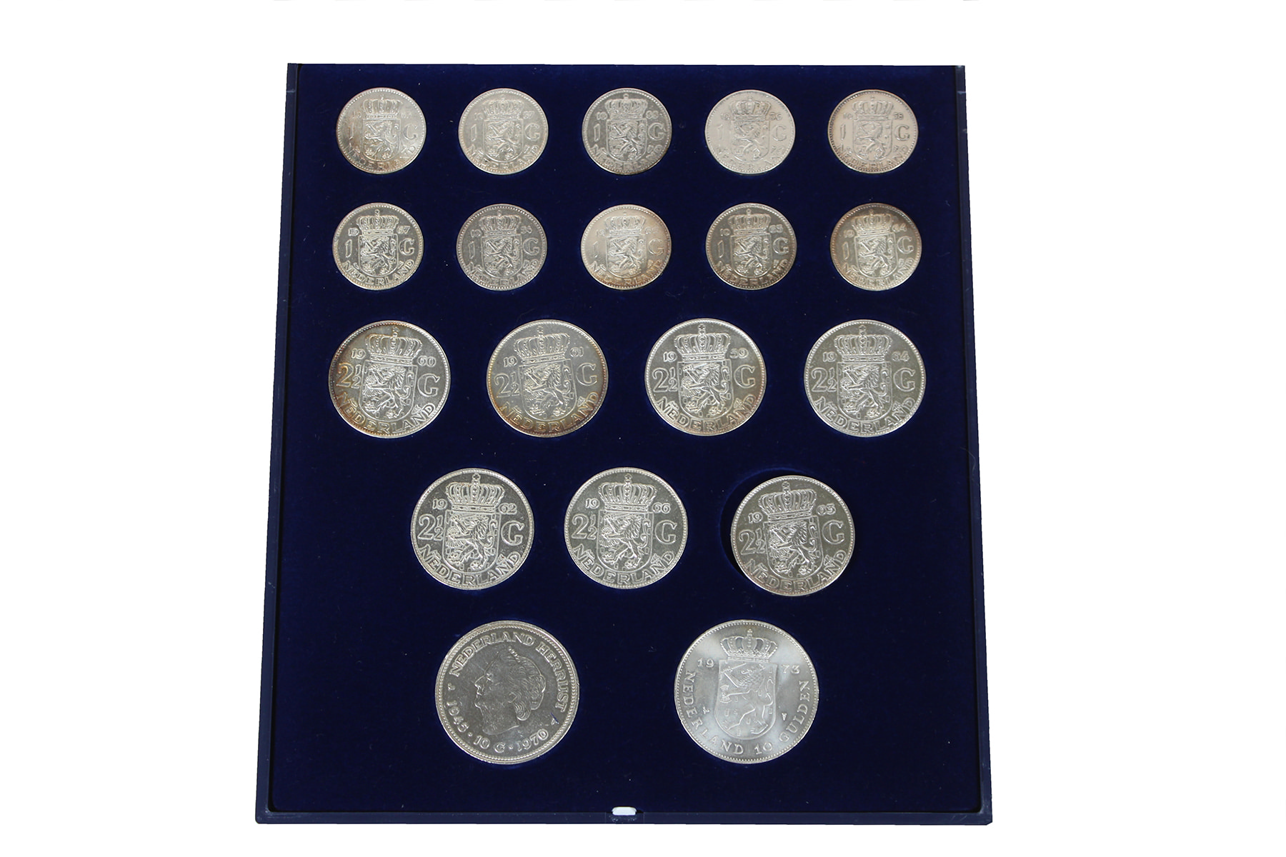Cassette met alle zilveren munten Juliana. Totaal netto zilver 157,7 gram.