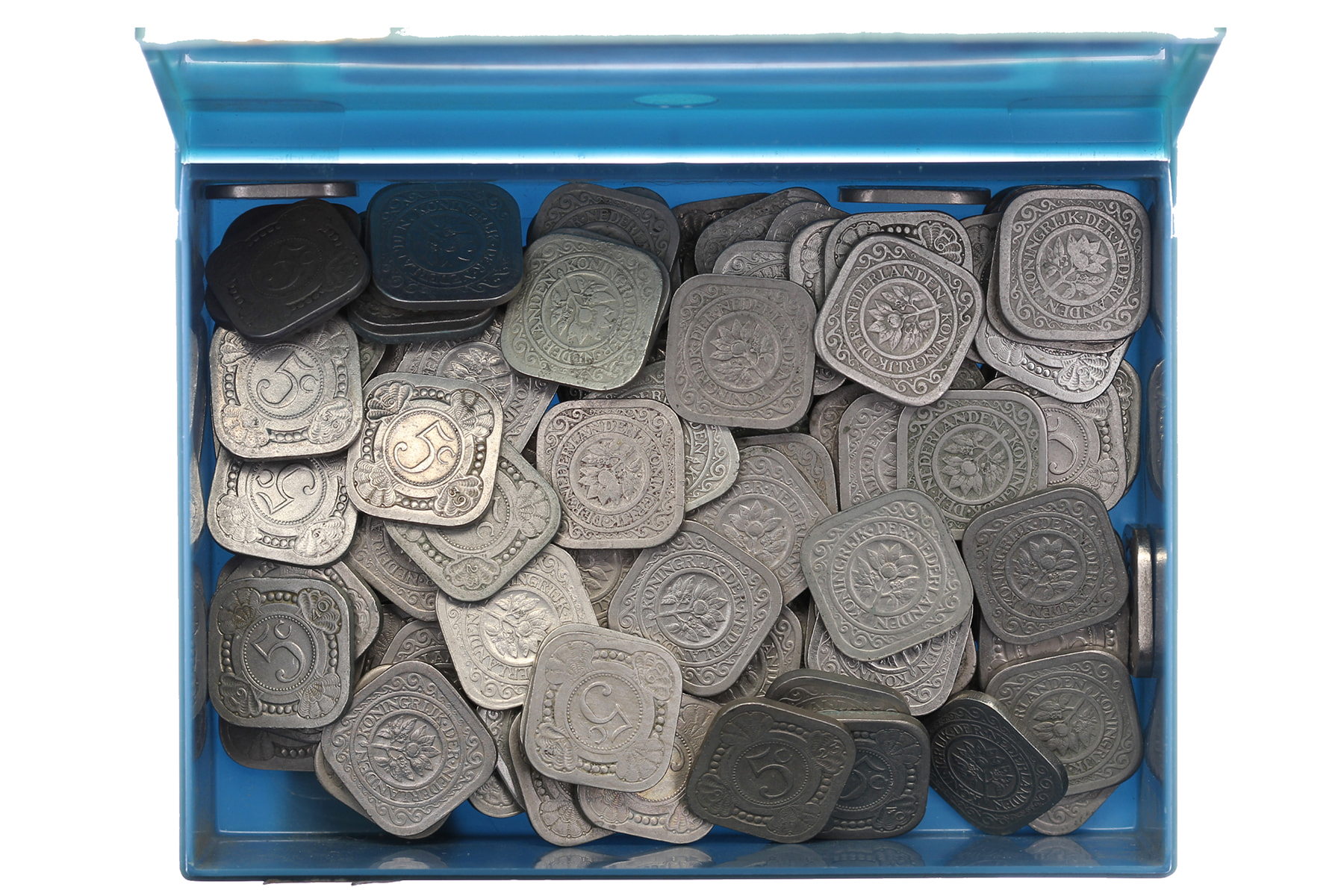 Doosje (125) koper-nikkelen vierkante stuivers 1913-1943, w.o. 3 x 1933.