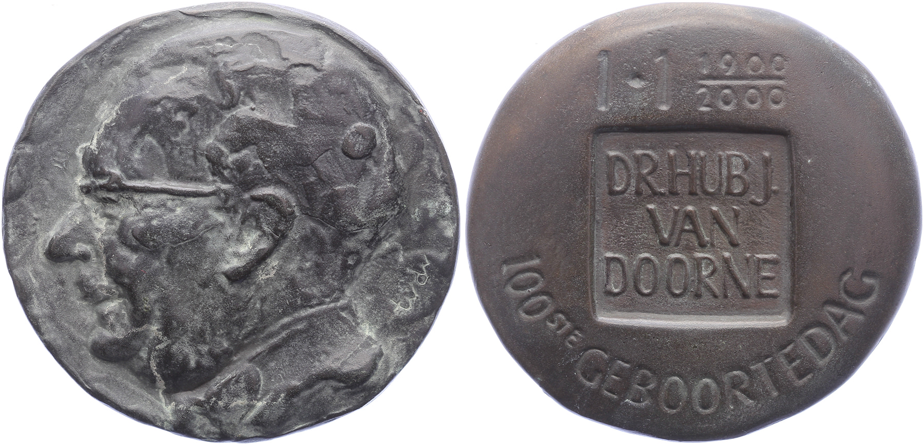2000 100e Geboortedag Dr. Hub J. van Doorne. Portret naar links. / Op- en omschrift.Æ gegoten 71. In origineel doosje. Prachtig.