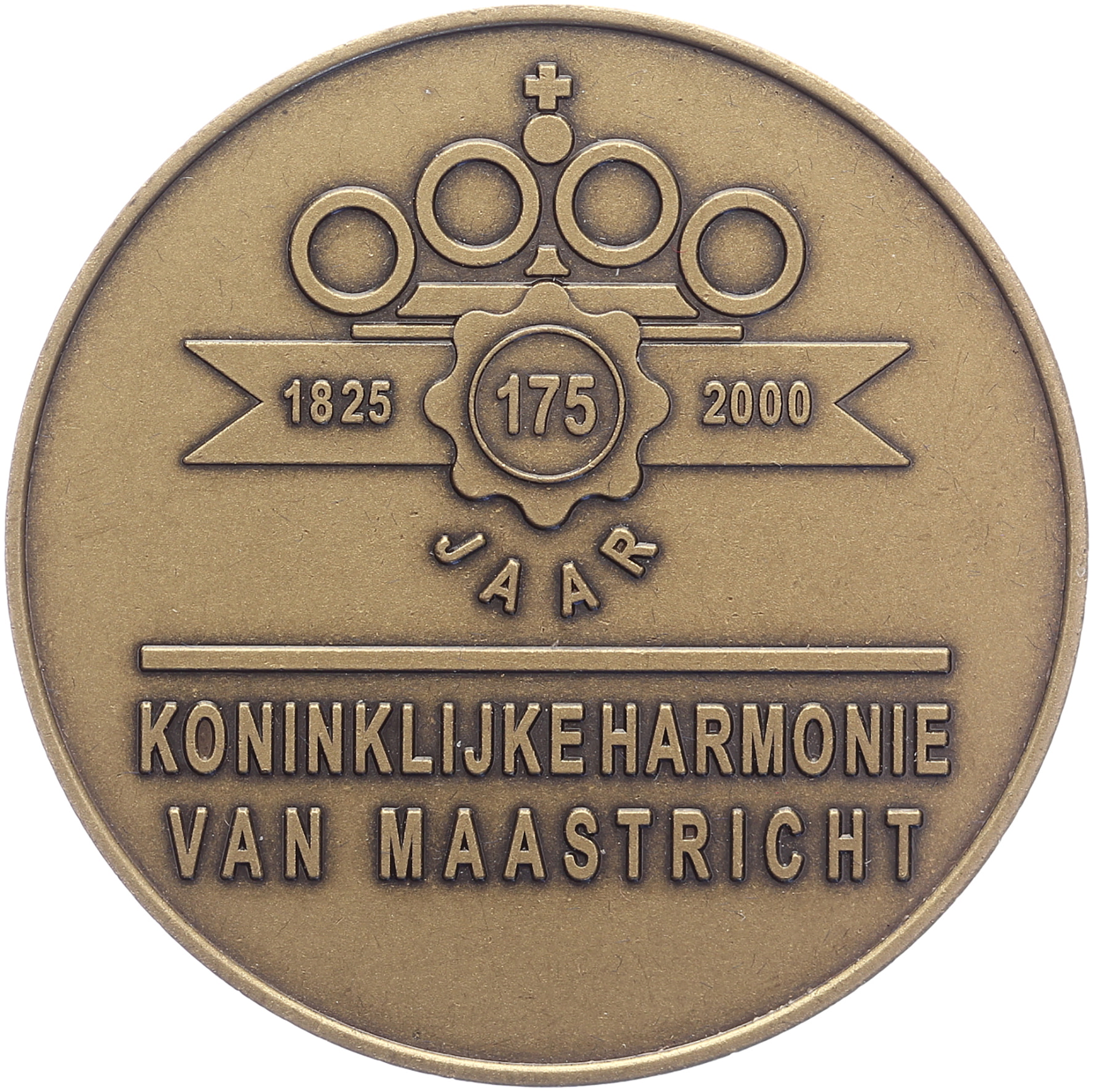 2000 175 jaar Koninklijke Harmonie. Jubileumdata; logo en tekst. / Blanco (inscriptieruimte).Æ 51. In origineel doosje. Prachtig.