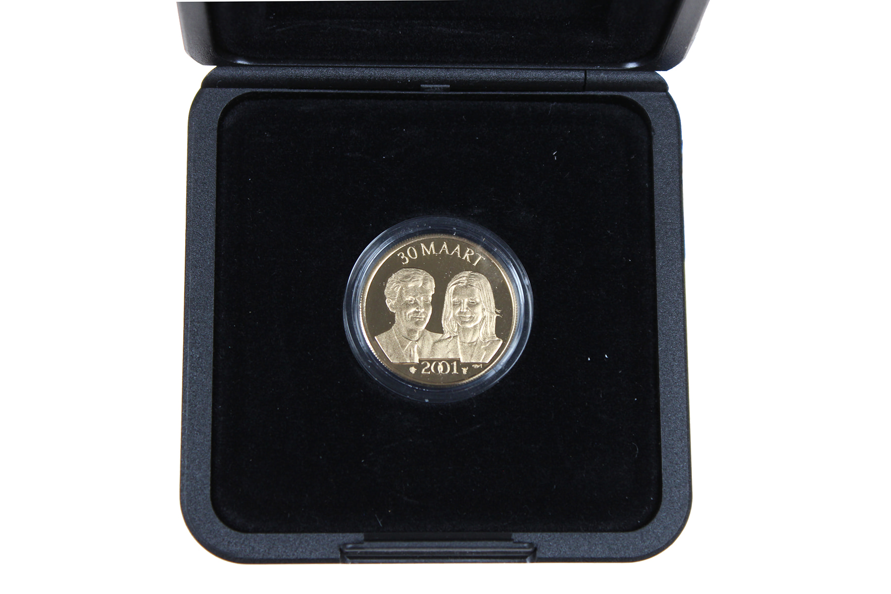 2001 Verloving prins Willem-Alexander & Máxima Zorreguieta. Het verloofde paar. / Argentijnse en Nederlandse vlag. AU 21 [3,494 gram, 916/1000]. Willem Vis. FDC.