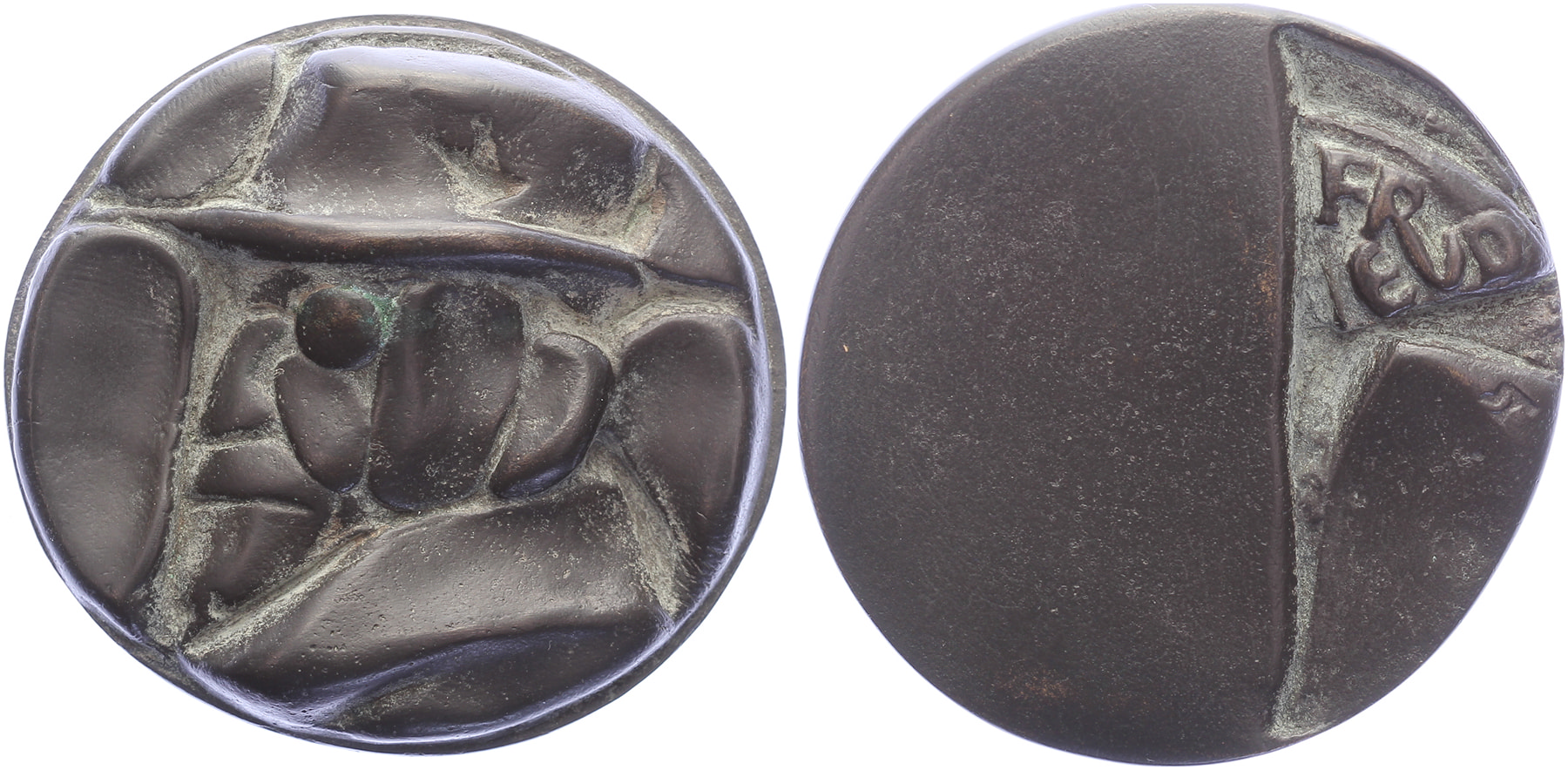 1994 Sigmund Freud. Buste Freud à la Geer Steyn naar links. / Desintegratie van de cirkel + naamgeving. Æ gegoten 61/66. In origineel doosje. Prachtig.
