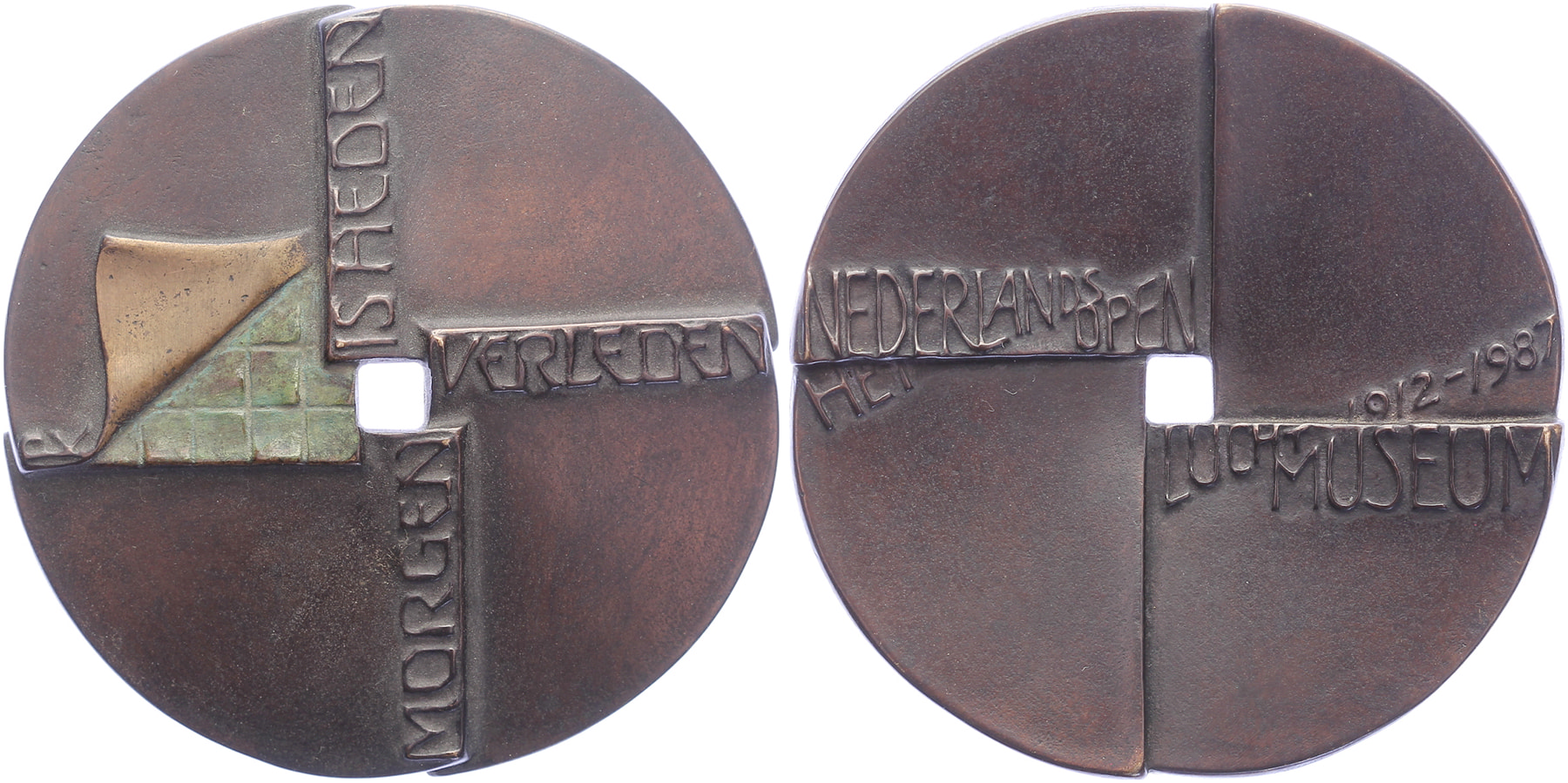 1987 75 jaar Openluchtmuseum. In vieren gedeeld vlak met omgeslagen hoekpunt. / Tekst.Æ gegoten 65. Tilanus p. 455-457. Jannes Limperg. Prachtig.