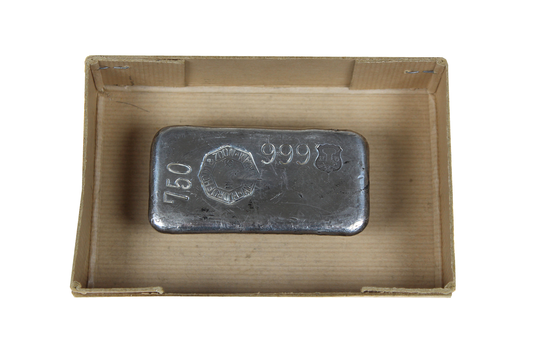‘Broodje’ zilver van H. Drijfhout & Zoon Amsterdam. Gehalte 999, met nummer 750. Voor de liefhebber!