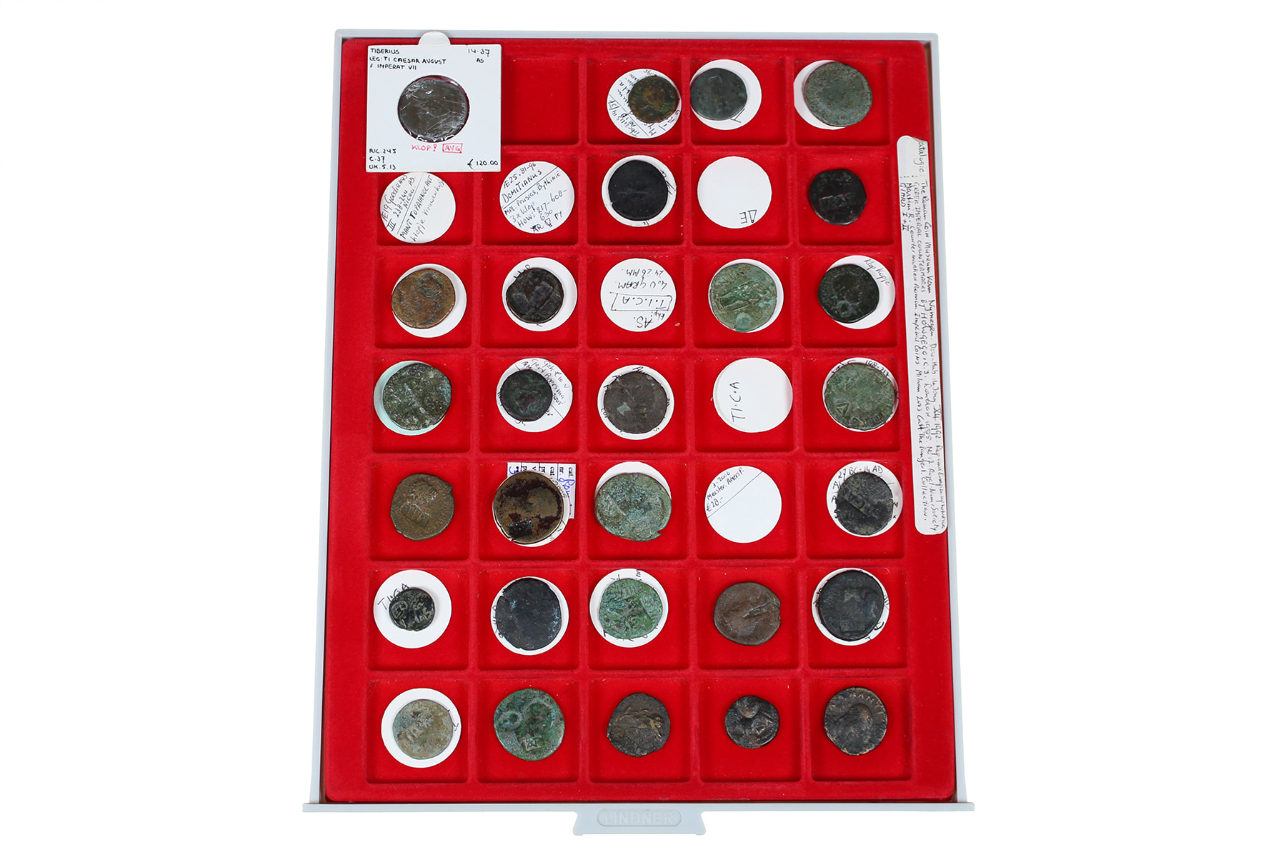Lindner-cassette bronzen Romeinse munten (28); de meeste met een klop. Mogelijk interessant.
