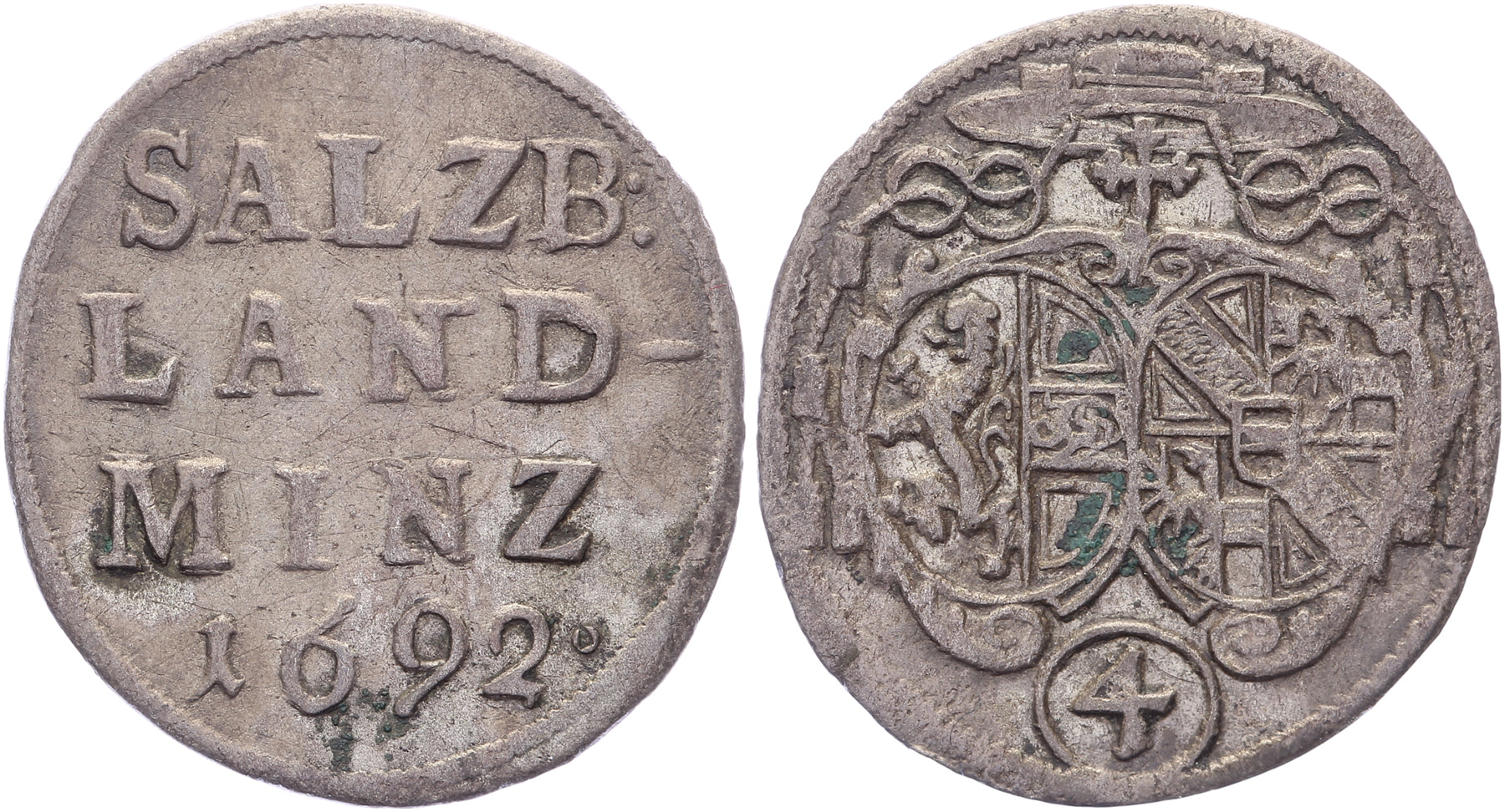 4 Kreuzer (Batzen) 1692. Probszt 1862; KM 277. Nice VF.