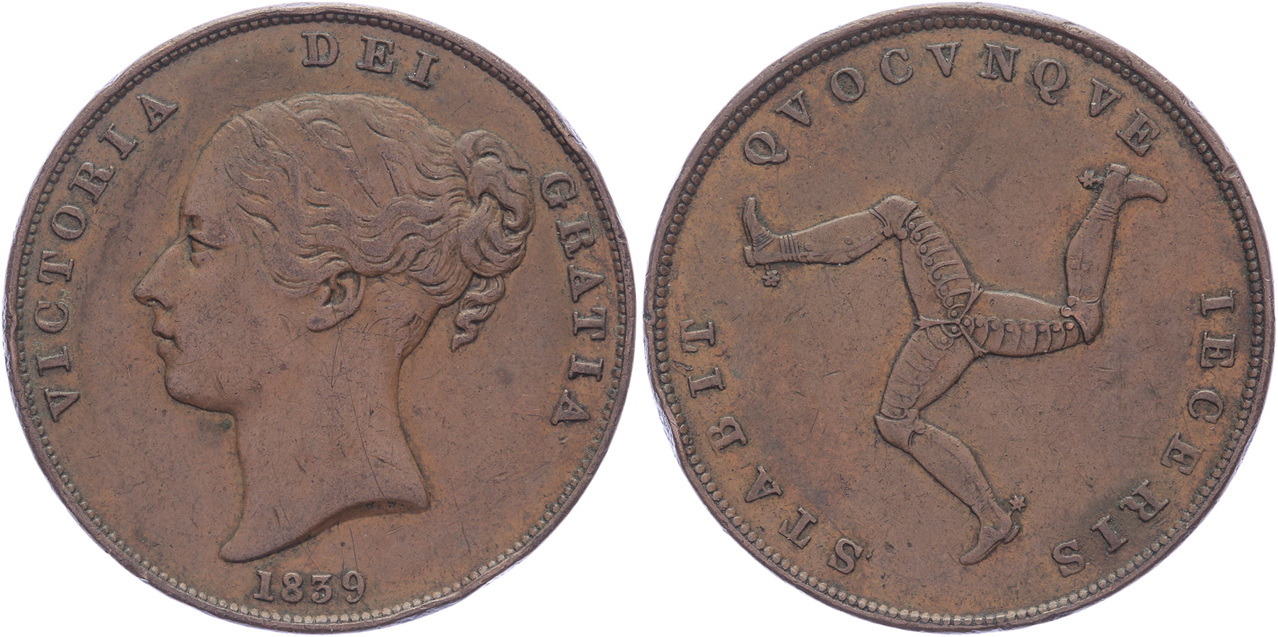 Penny 1839. KM 14. Irregular edge. Good VF.