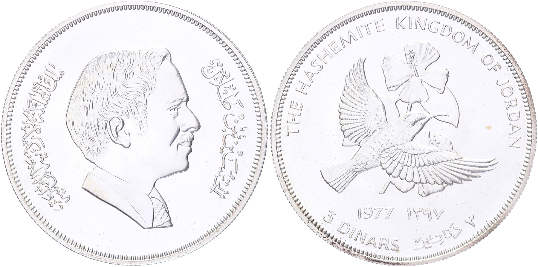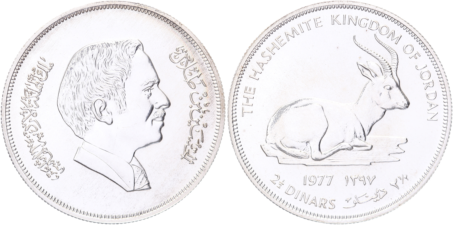 2 ½ + 3 Dinars 1977 Gazelle / Sunbird. KM 31, 32. Unc.
