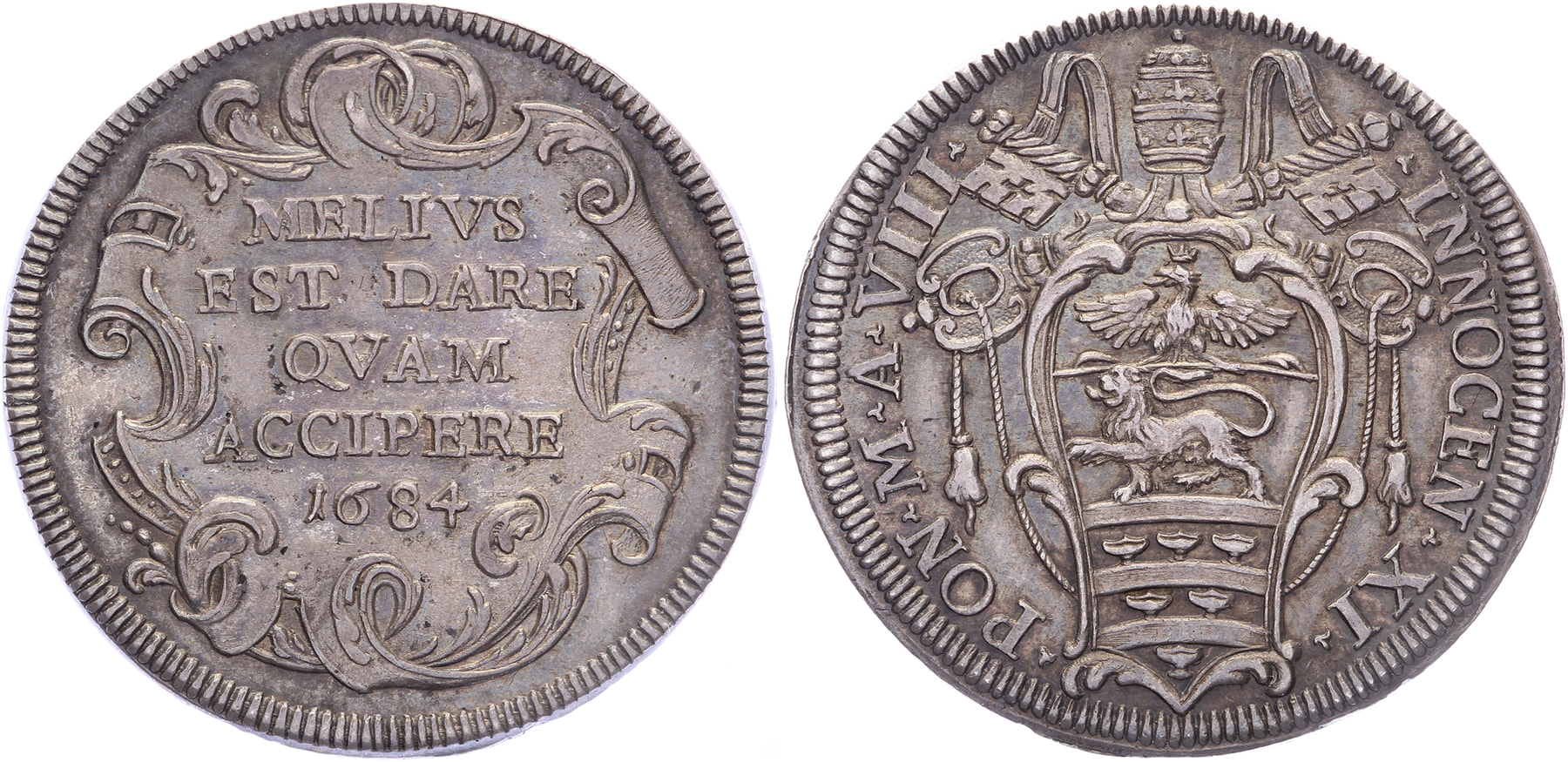 Testone 1684, anno VIII. Berman 2102; MIR 2035/21; KM 436. Near UNC.