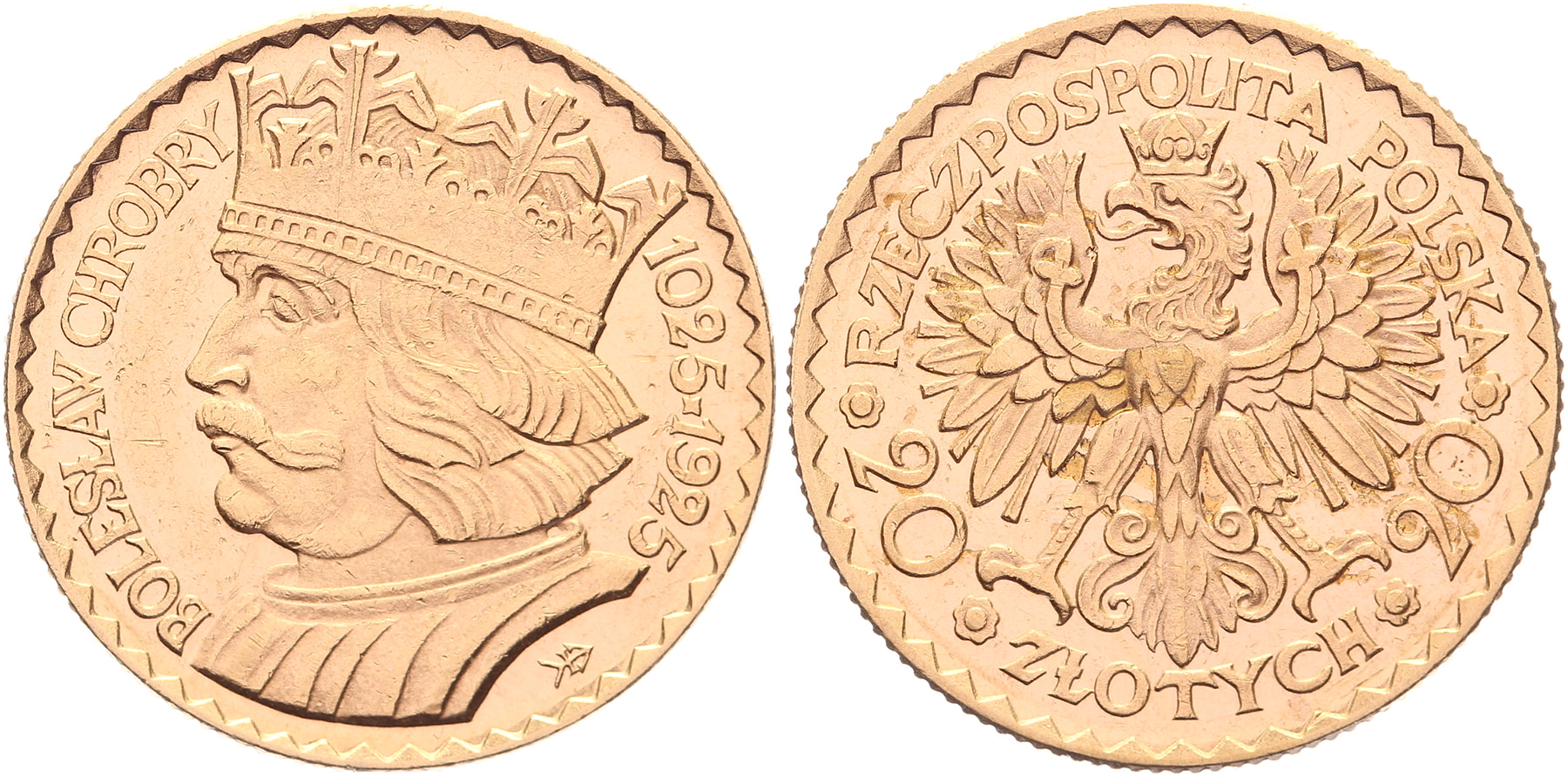 20 Zlotych 1925 Anniversary. Fr. 115; KM Y33. Brilliant Uncirculated.