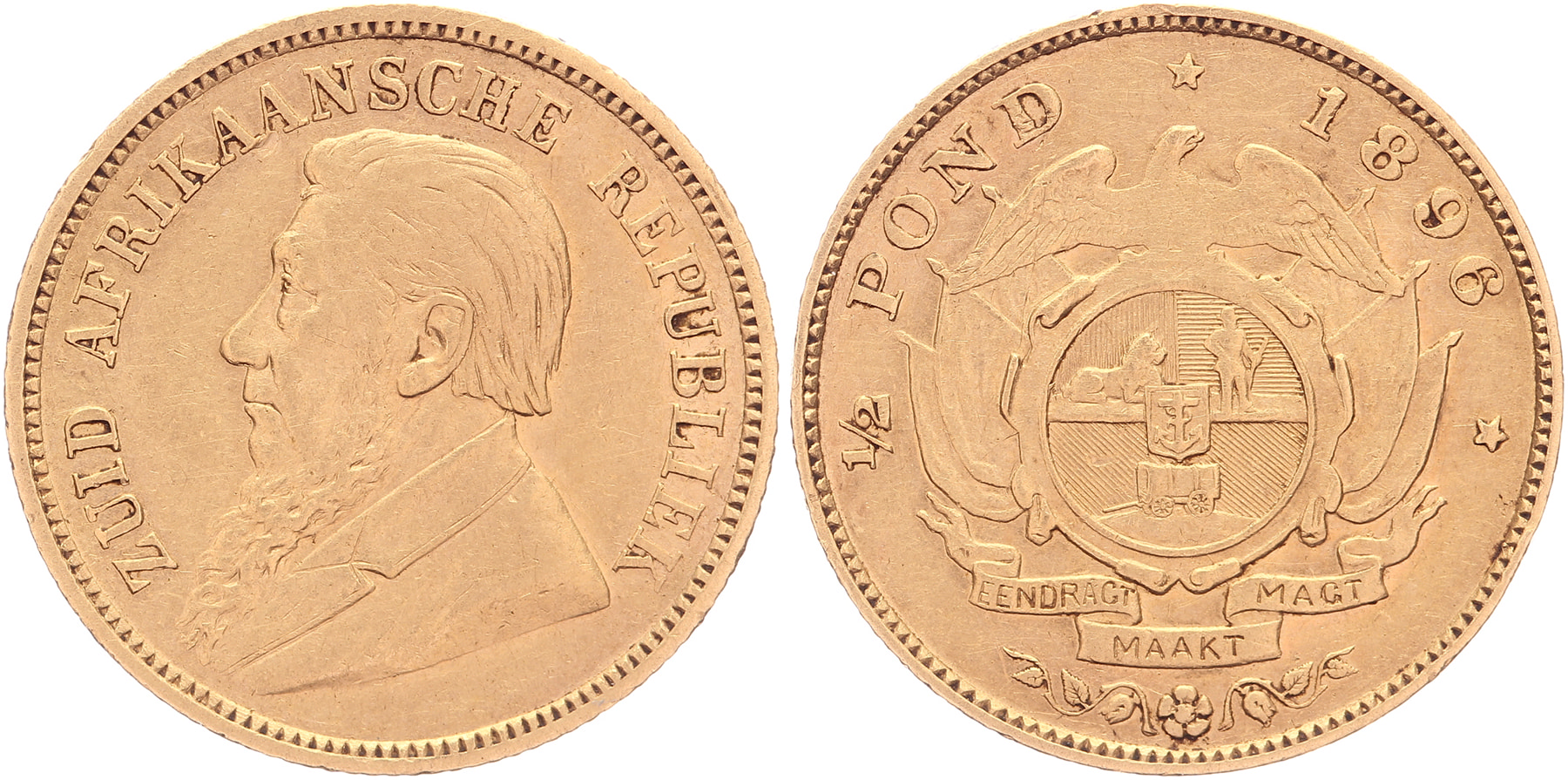 ½ Pond 1896 Kruger. Fr. 3; KM 9.2 [3,97 gr.]. Fine / Very Fine.