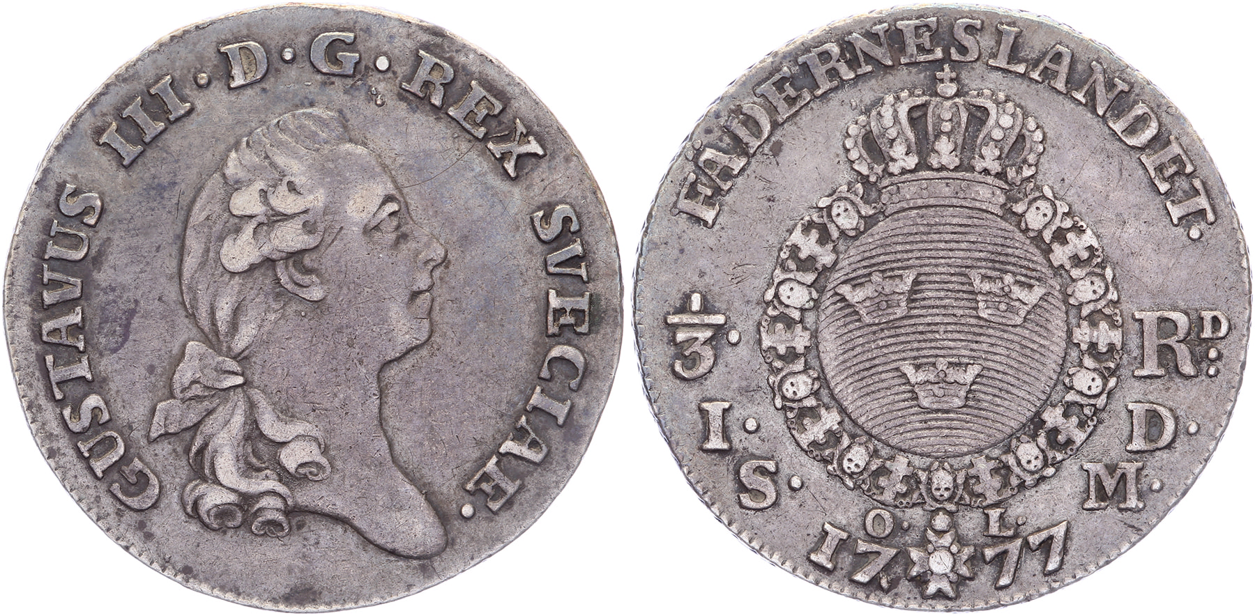 1/3 Riksdaler (1 Daler Silvermynt) 1777. AAH 61; KM 516. VF.