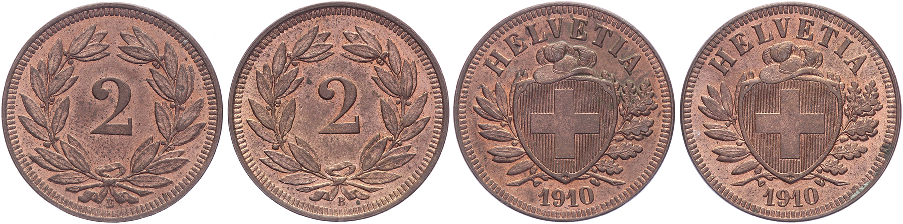 Lot (2) 2 Rappen 1910. KM 4.2. Original lustre. UNC.