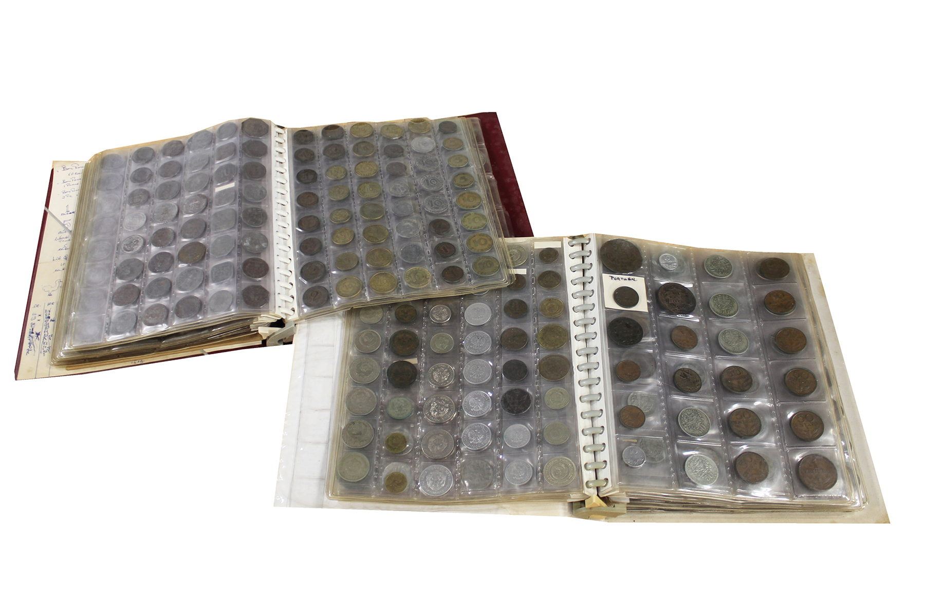 Twee ouderwetse primitieve multomappen met eenvoudige Europa / wereldcollectie uit de jaren ’60 van de vorige eeuw.