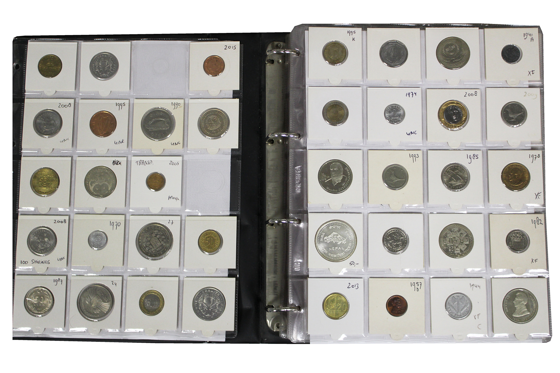 Album wereld, o.a. Nepal, Bahrein, Peru etc. Bijna 400 stuks. Veel UNC. Ca. 4,5 kg.