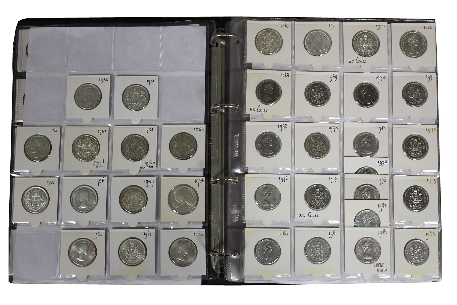 Album wereld, voornamelijk Canada. Ruim 225 stuks. Veel zilver. Ca. 4 kg.