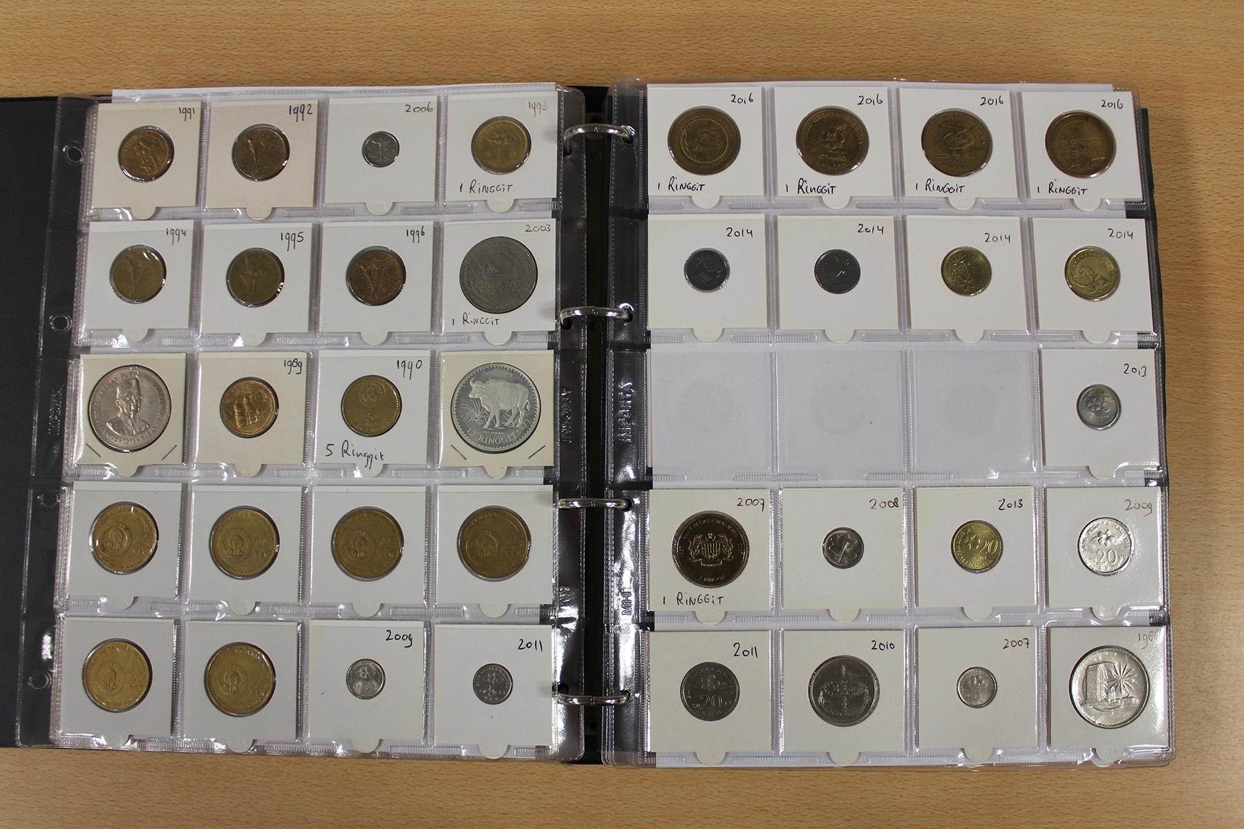 Album wereld, o.a. Maleisië, Singapore etc. Ruim 525 stuks. Veel UNC. Ca. 5,5 kg.