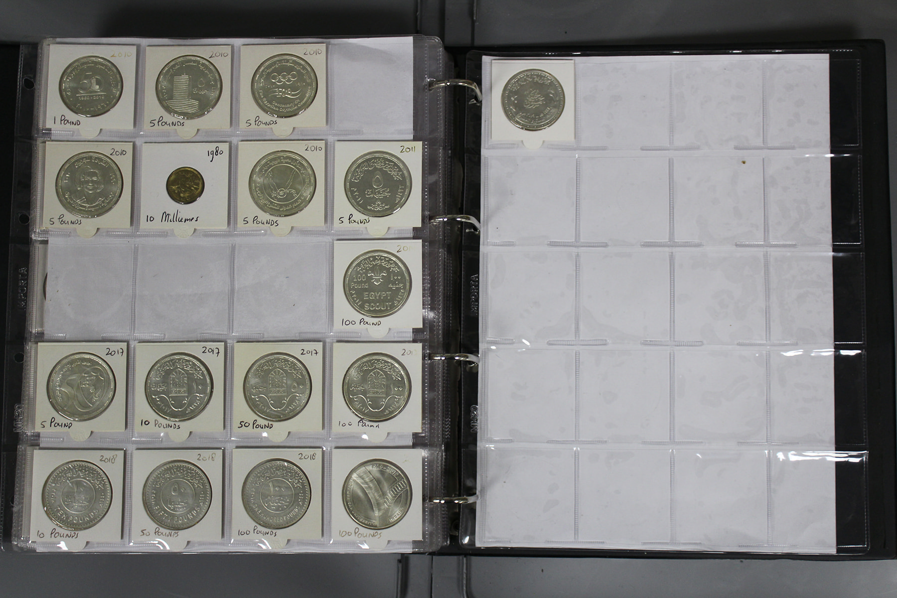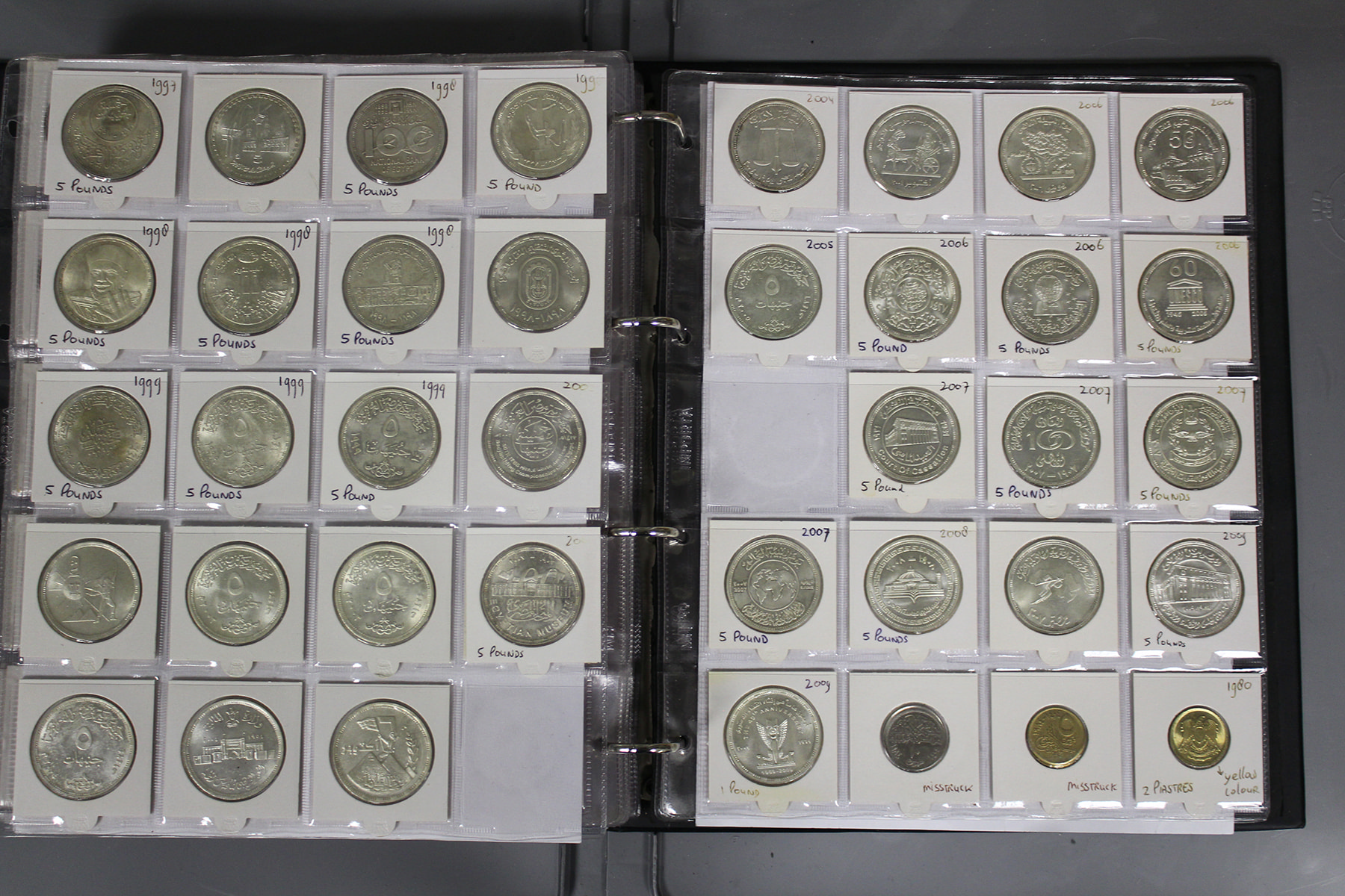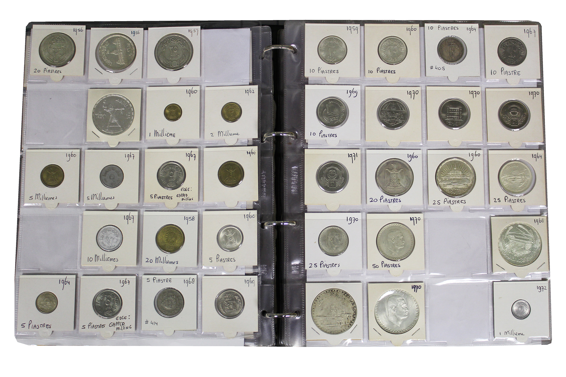 Album wereld, voornamelijk Egypte, 5 t/m 100 pounds. Ook zilver. Ruim 500 stuks. Veel UNC. Ca. 7,5 kg.