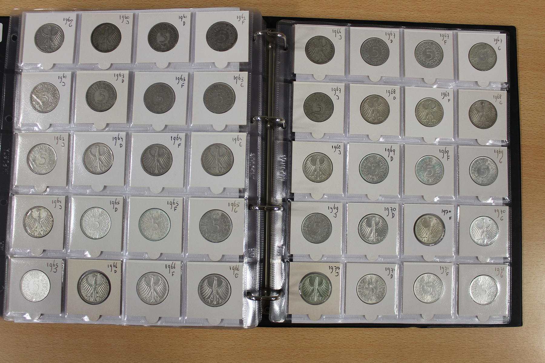 Album uitsluitend Duitsland 1 - 2 en 5 DM. Ca. 350 stuks. Ca. 4,5 kg.