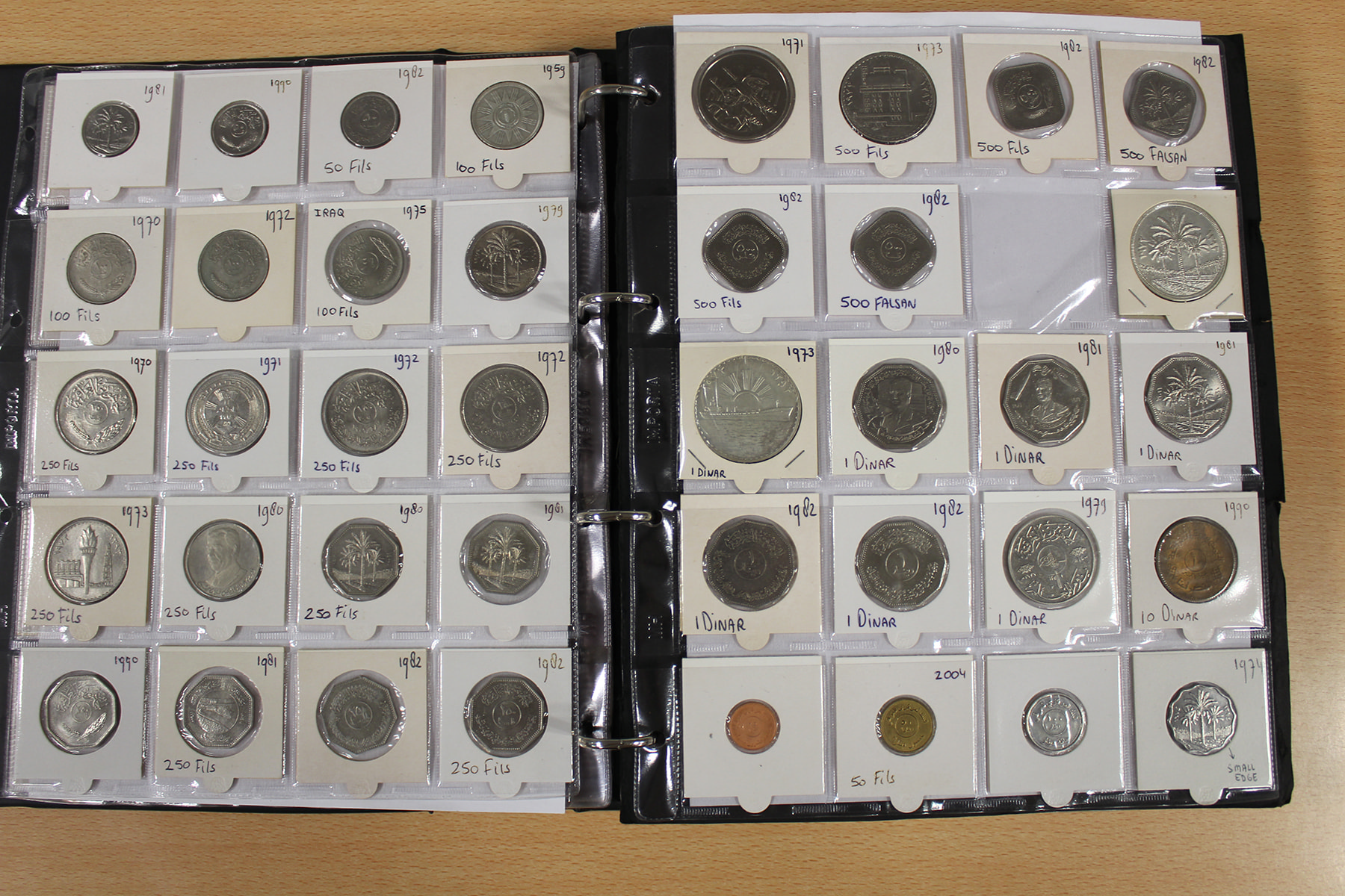 Album wereld, o.a. Irak, Iran etc. Bijna 500 stuks. Ook zilver. Veel UNC. Ca. 5,5 kg.