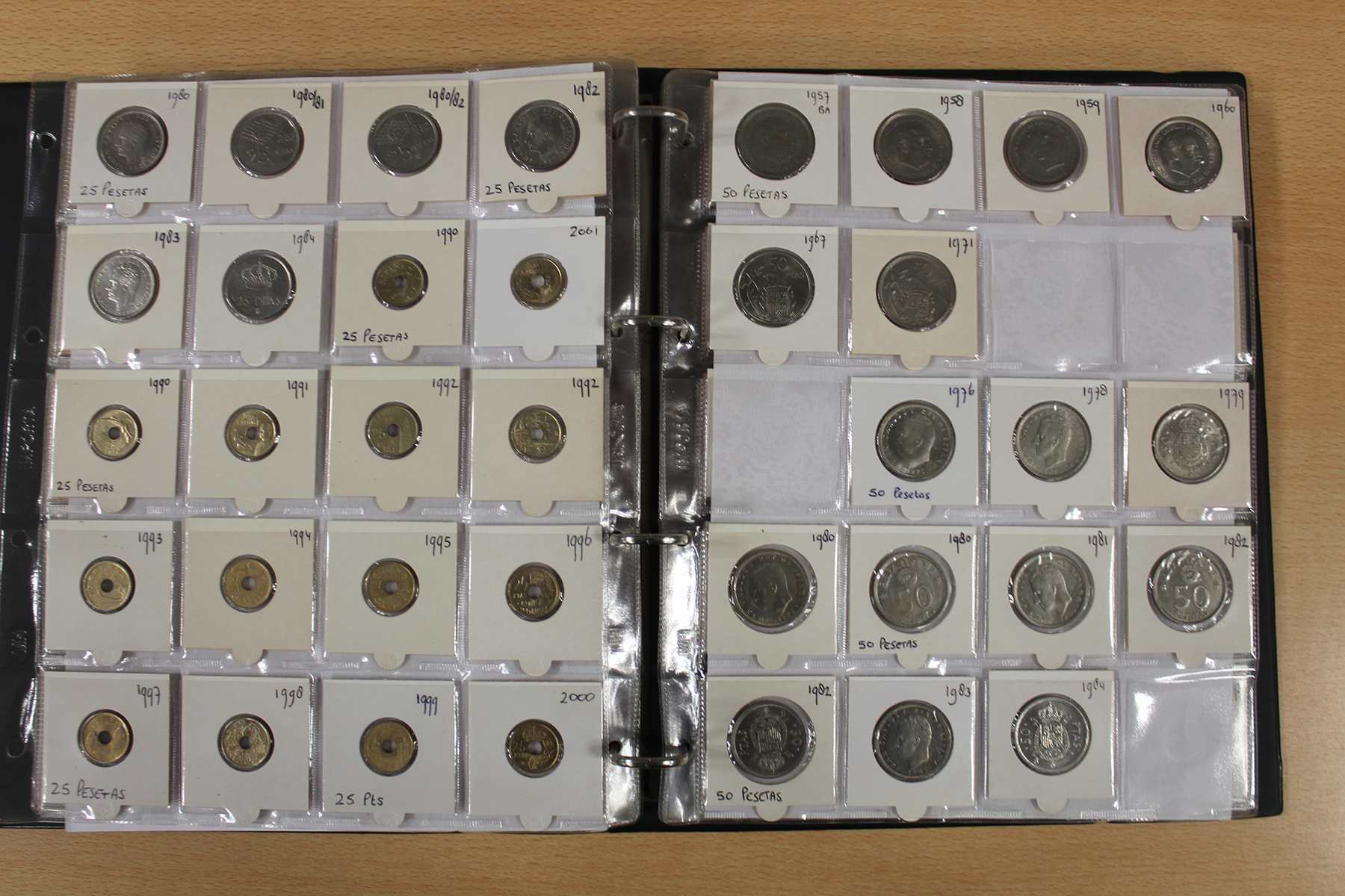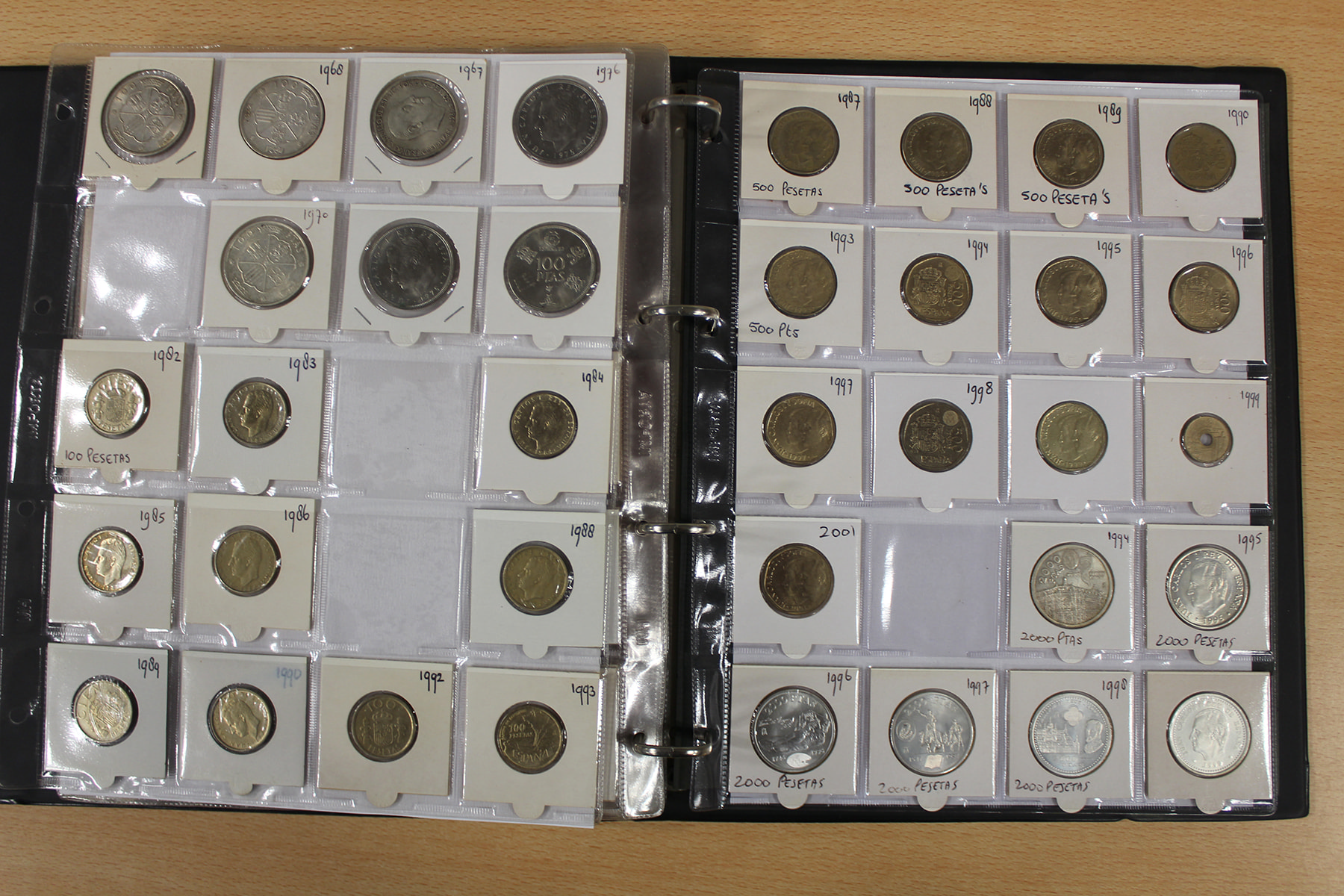 Album wereld, voornamelijk Spanje. Ca. 300 stuks Ook zilver. Ook UNC. Ca. 3,5 kg.