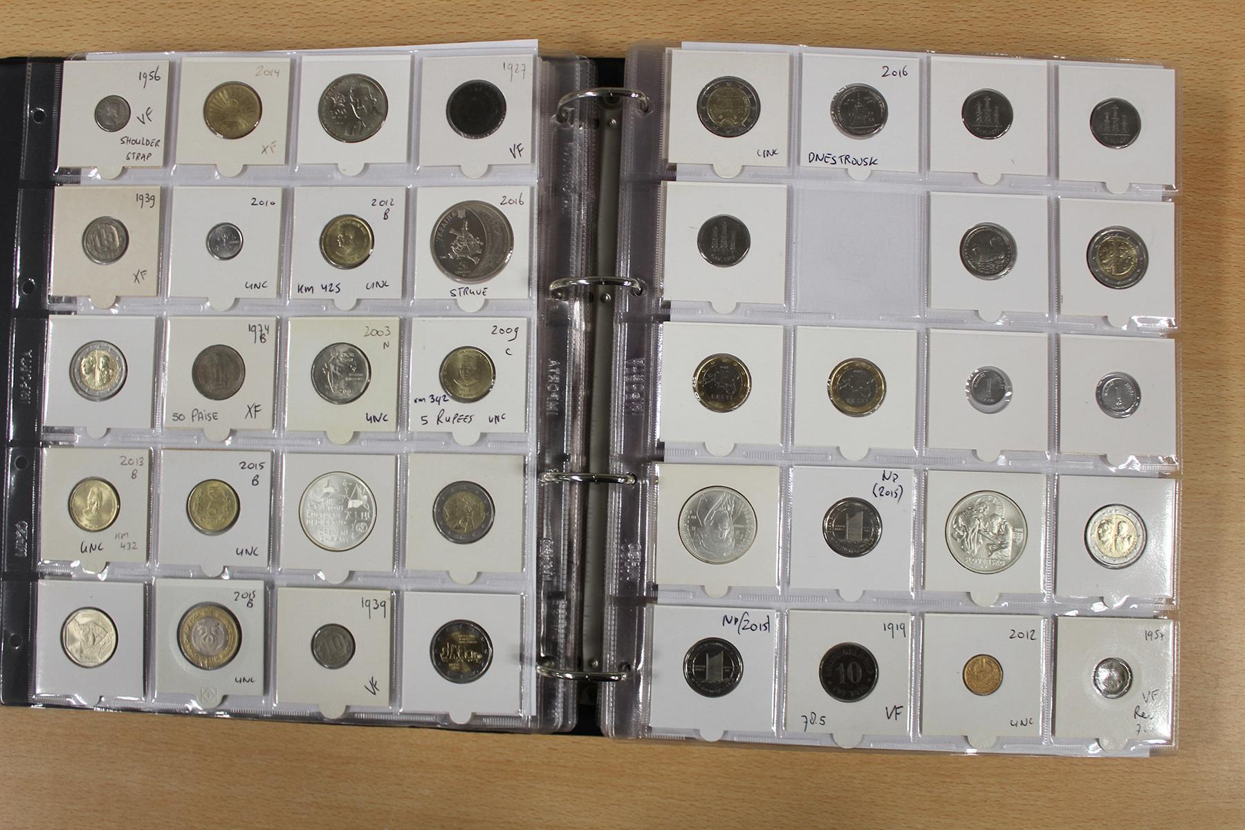 Album wereld, o.a. Slovenië, Costa Rica, Mexico, Zuid-Afrika etc. Ca. 400 stuks. Ook zilver. Veel UNC. Ca. 5,5 kg.