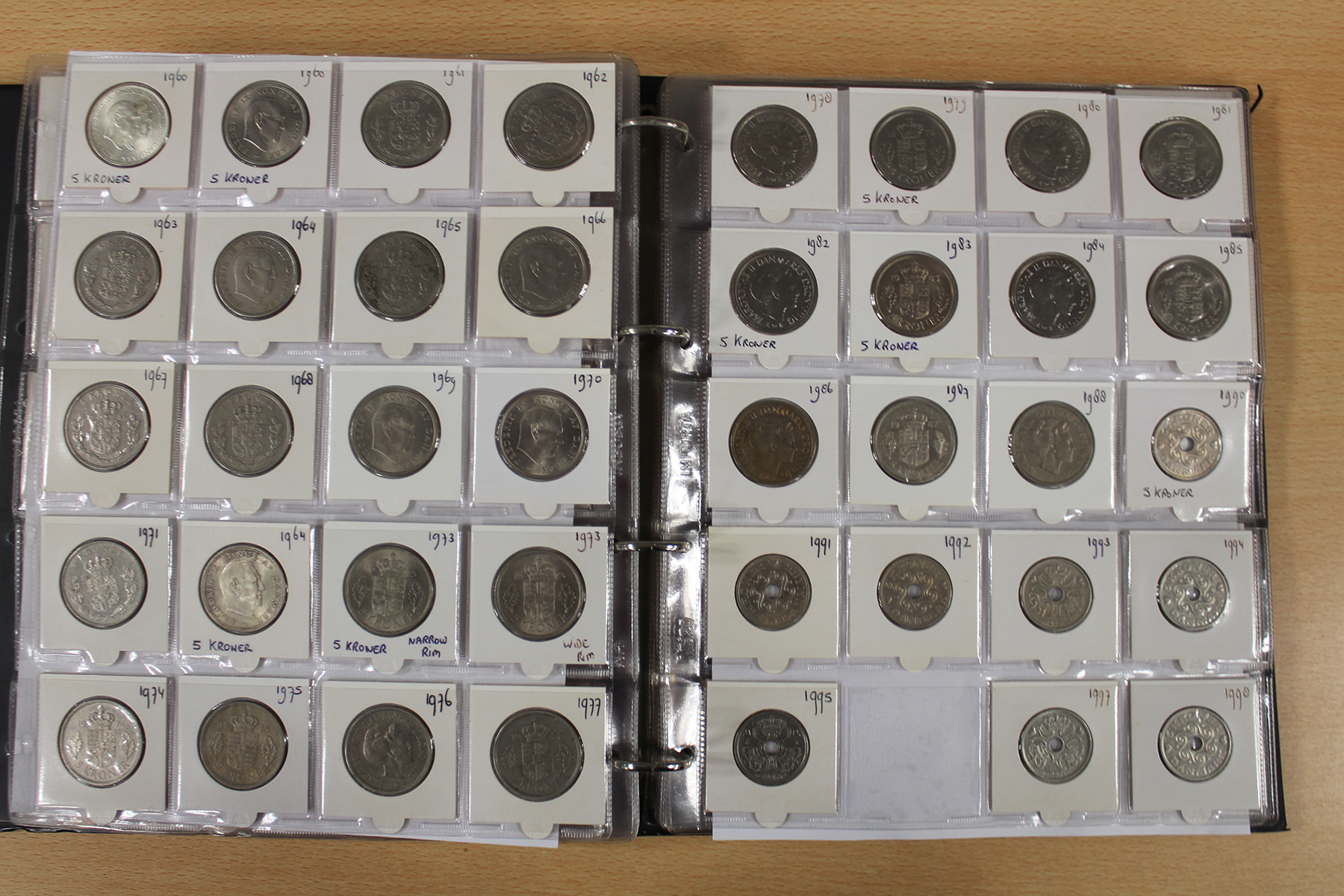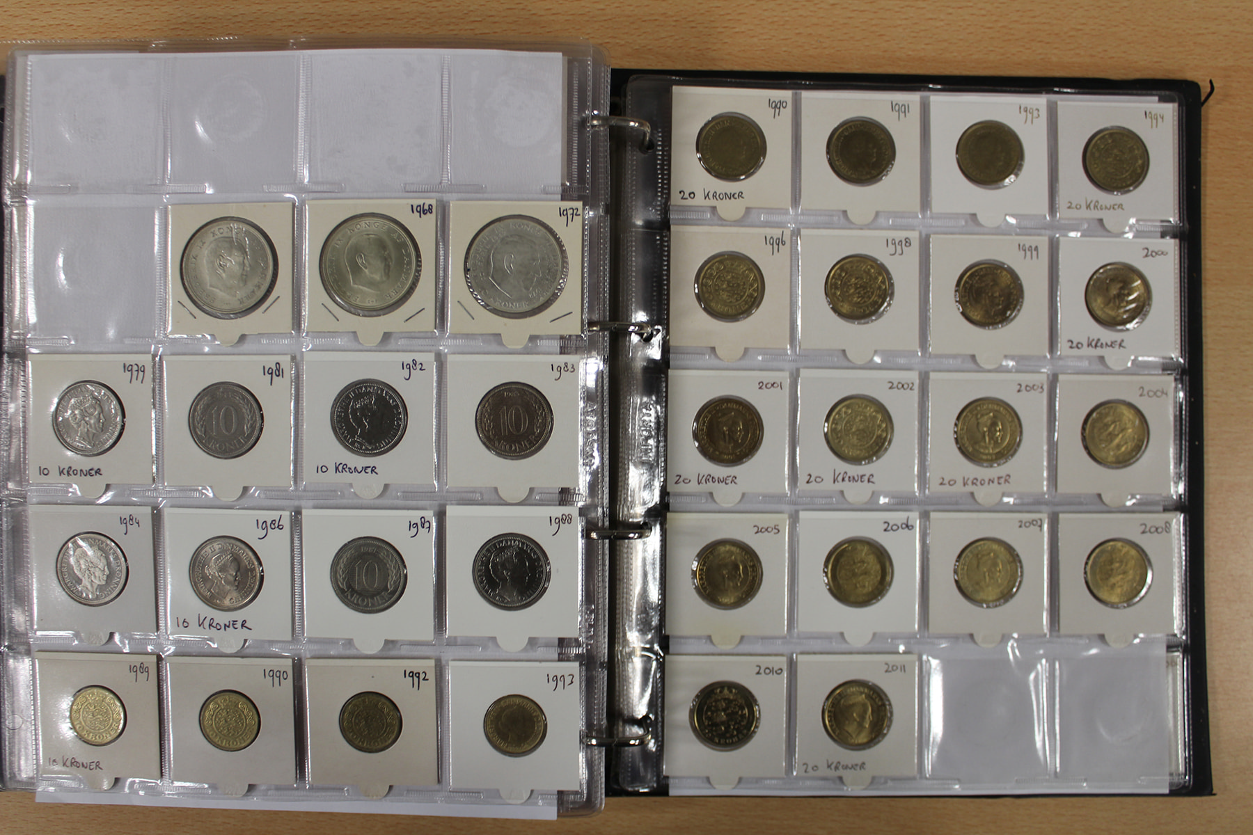 Album wereld, voornamelijk Denemarken 2 - 10 en 20 Kroner. Ca. 480 stuks. Ca. 5,5 kg.