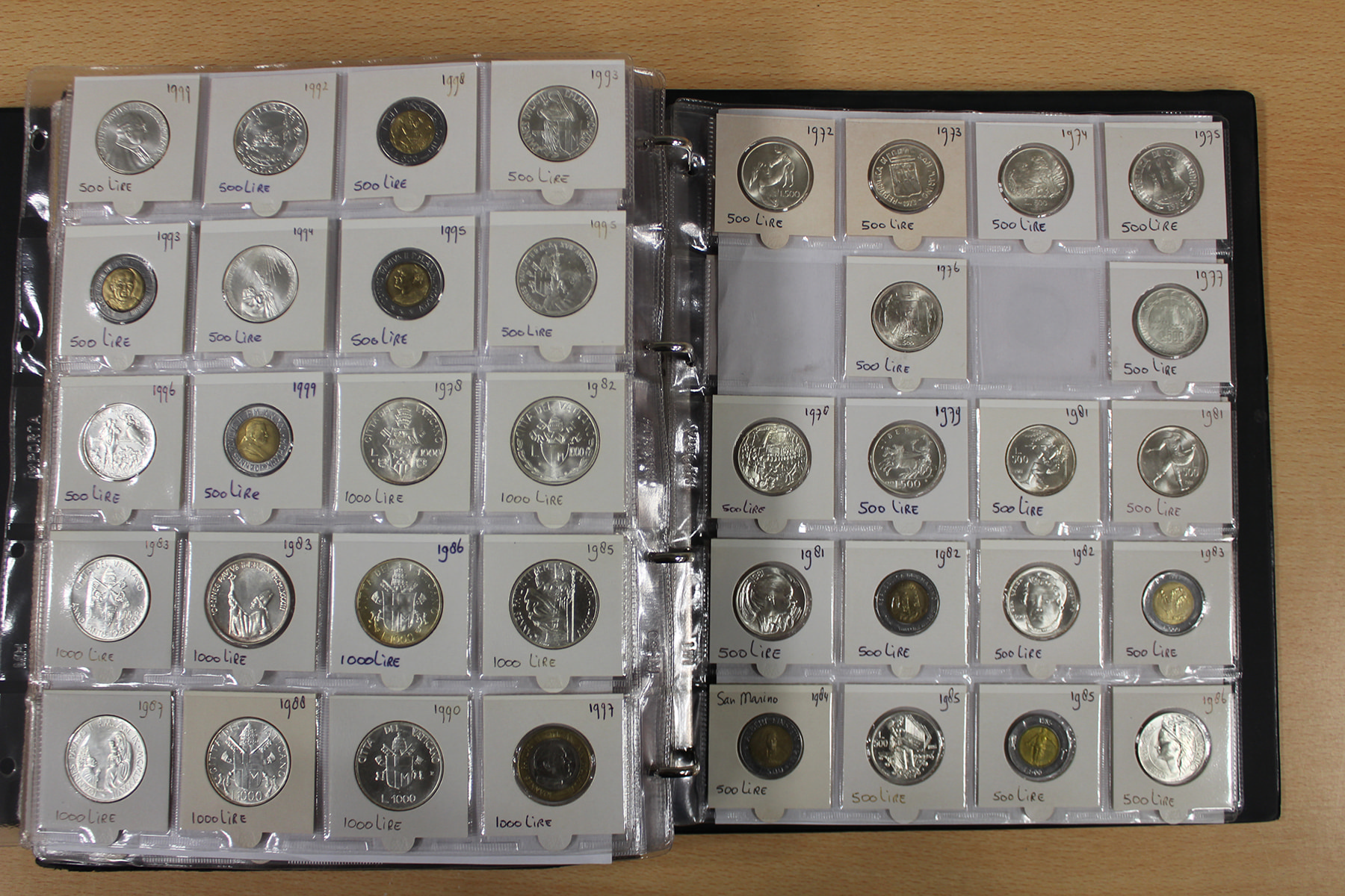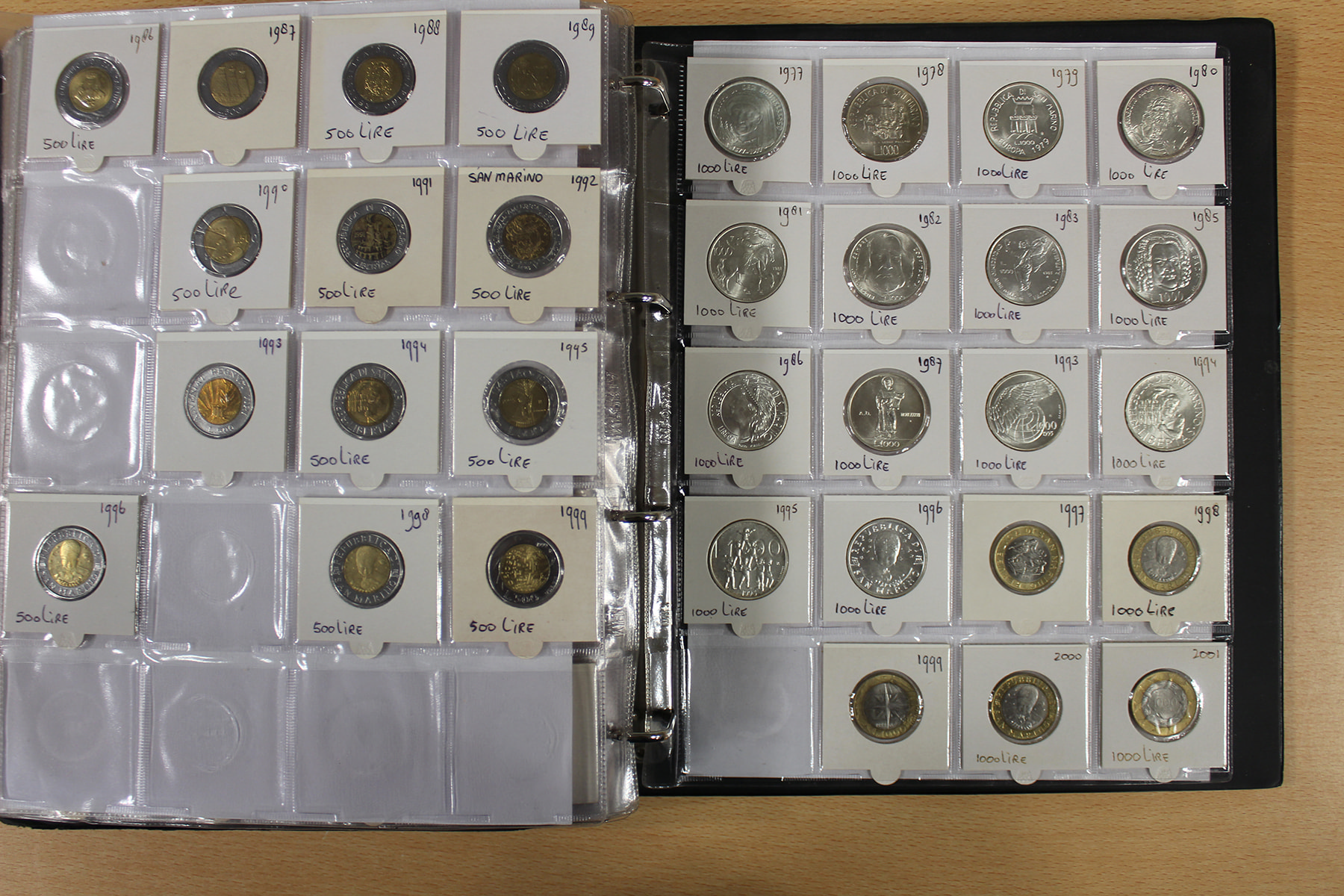 Album wereld, voornamelijk Italië. Ca. 565 stuks. Ook zilveren herdenkingsmunten. Ca. 6 kg.