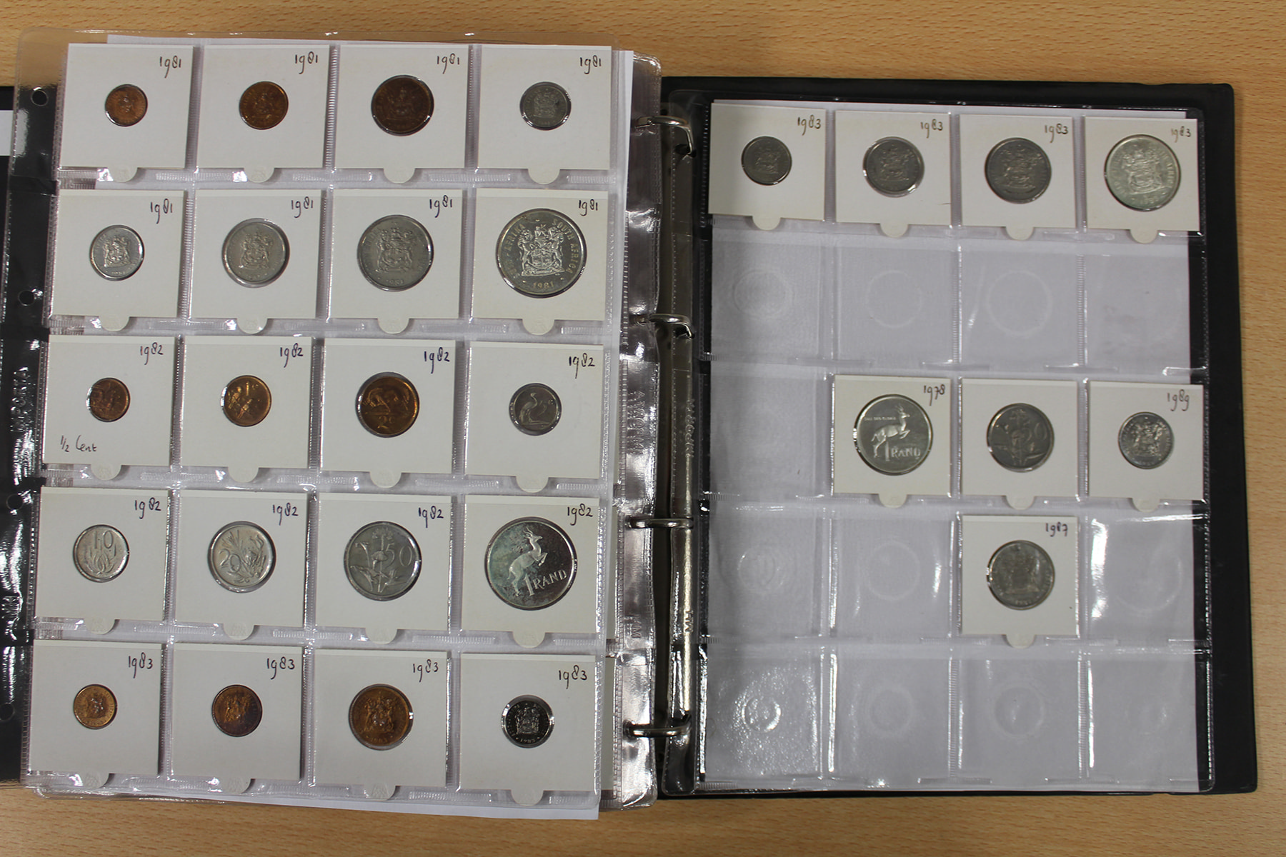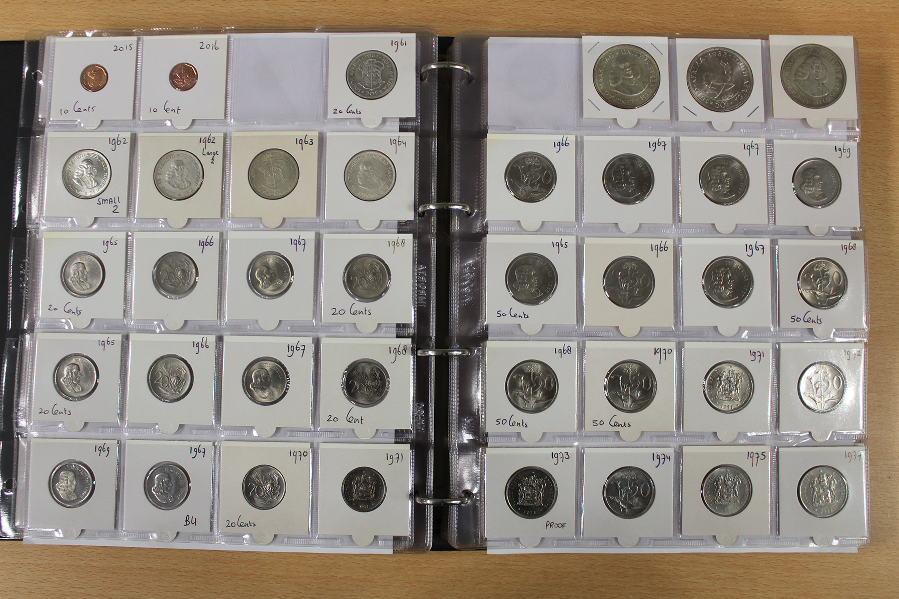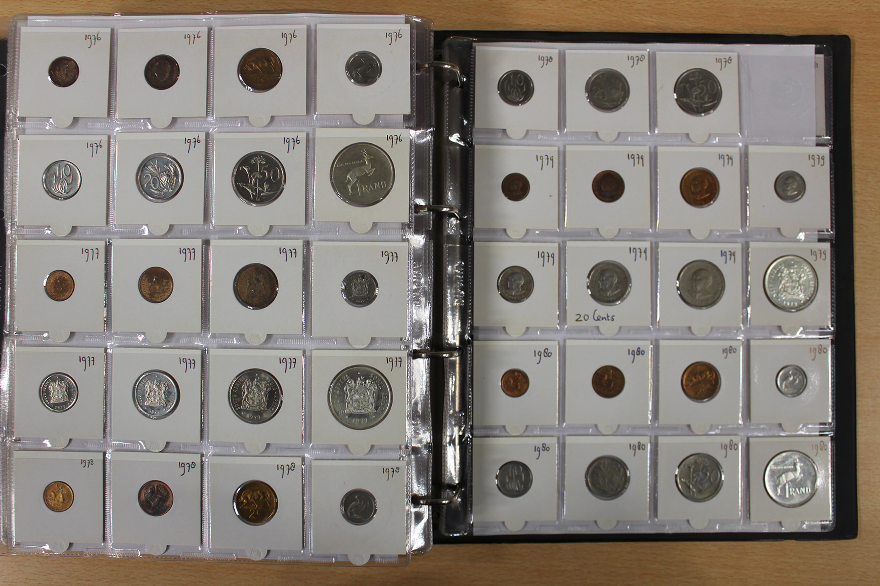 Album wereld, vrijwel uitsluitend Zuid-Afrika. Ruim 500 stuks. Ook zilver en UNC. Ca. 6 kg