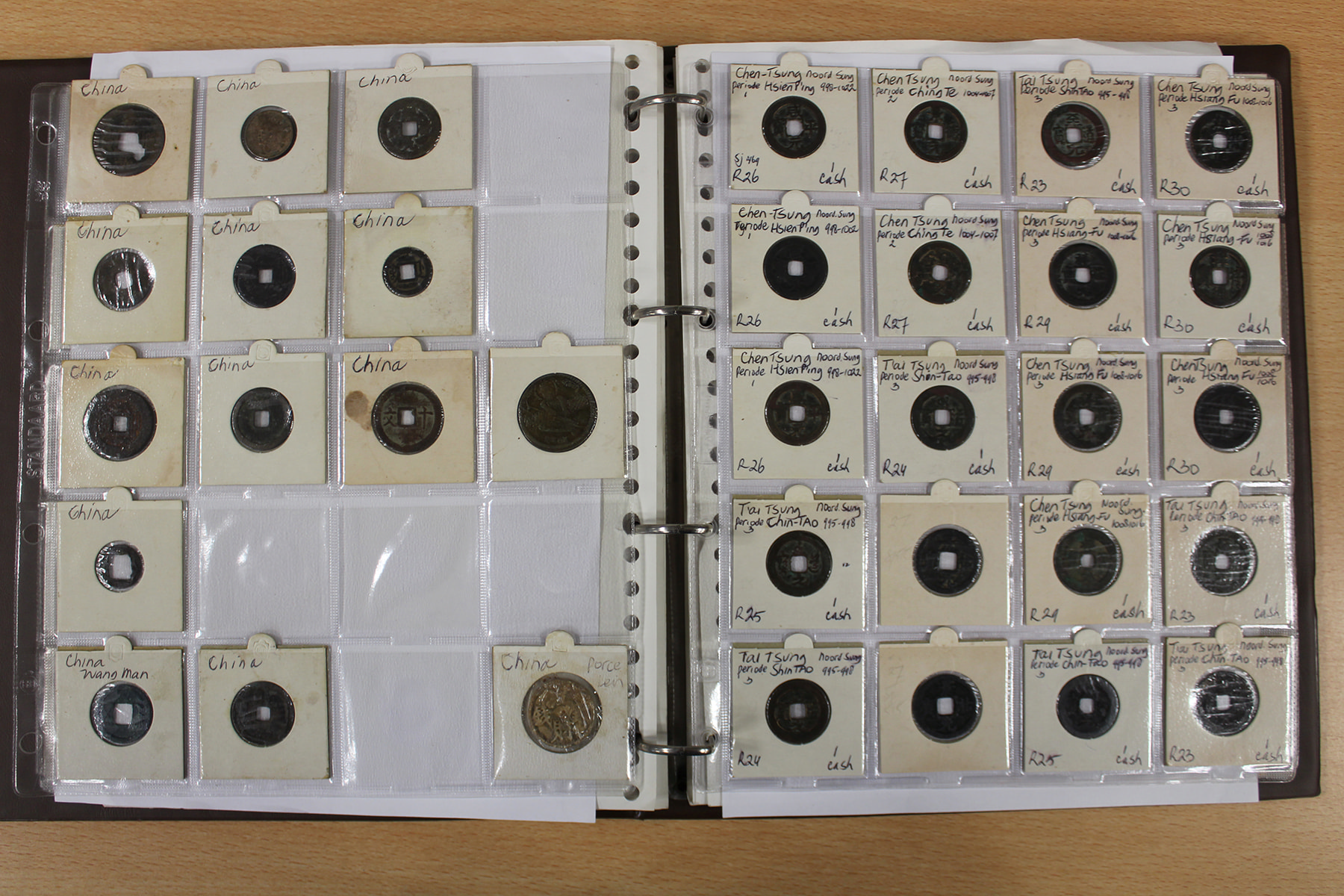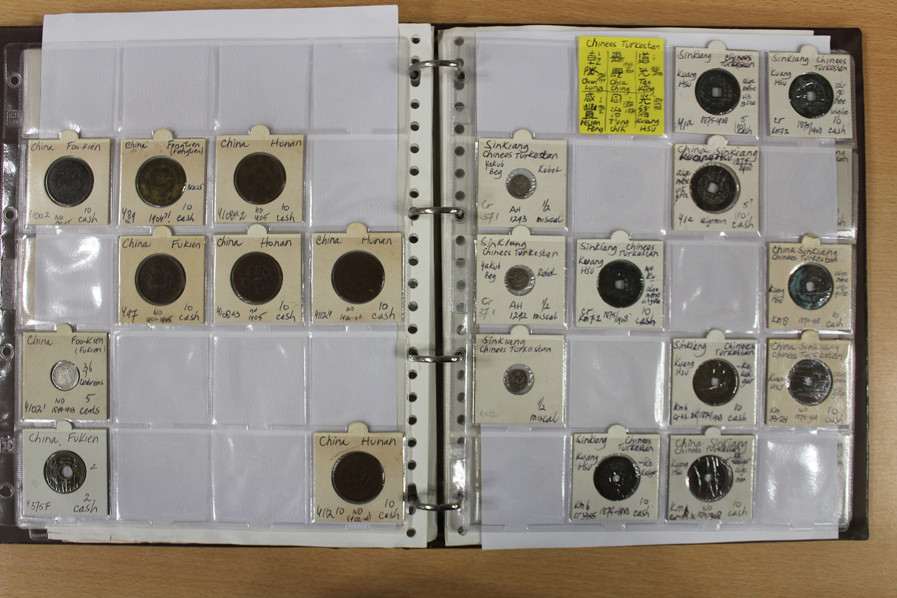 Twee albums wereld, o.a. Portugees India en China. Ca. 450 stuks. Ca. 4,5 kg.