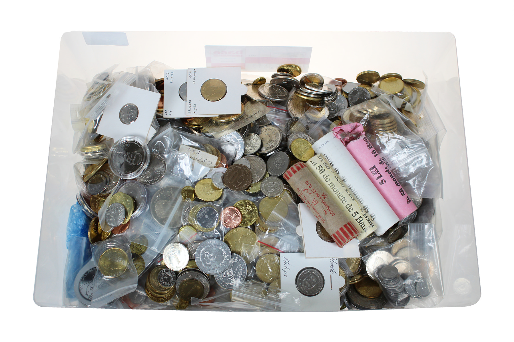 Mega surprise box XXL - Onuitgezochte hoeveelheid wereldmunten in een meer dan verrassende leuke samenstelling!! UNC, proof, in de rol en setjes. Ca. 10 kg.