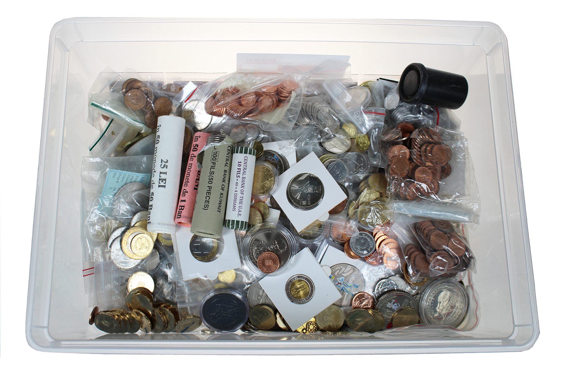 Mega surprise box XXL - Onuitgezochte hoeveelheid wereldmunten in een meer dan verrassende leuke samenstelling!! UNC, proof, in de rol en setjes. Ca. 10 kg.
