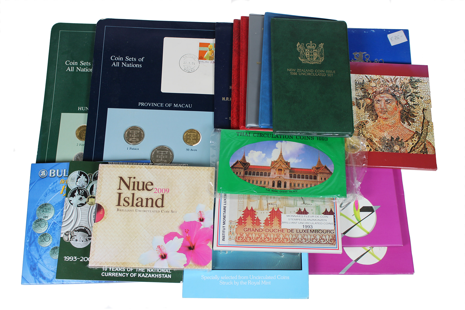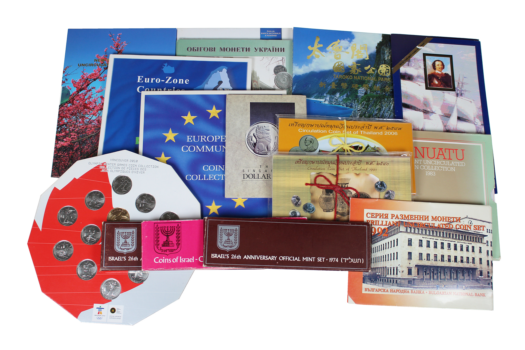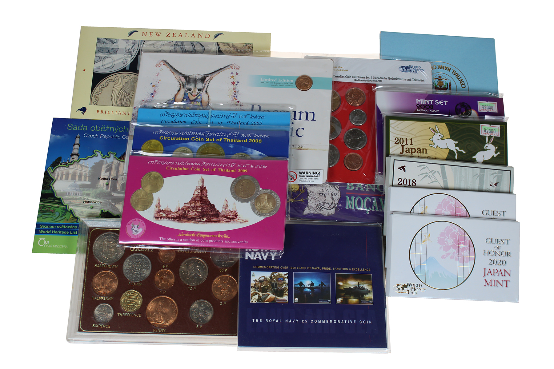 Kunststof box met ruim 50 stuks muntsets UNC en proof from all over the world!