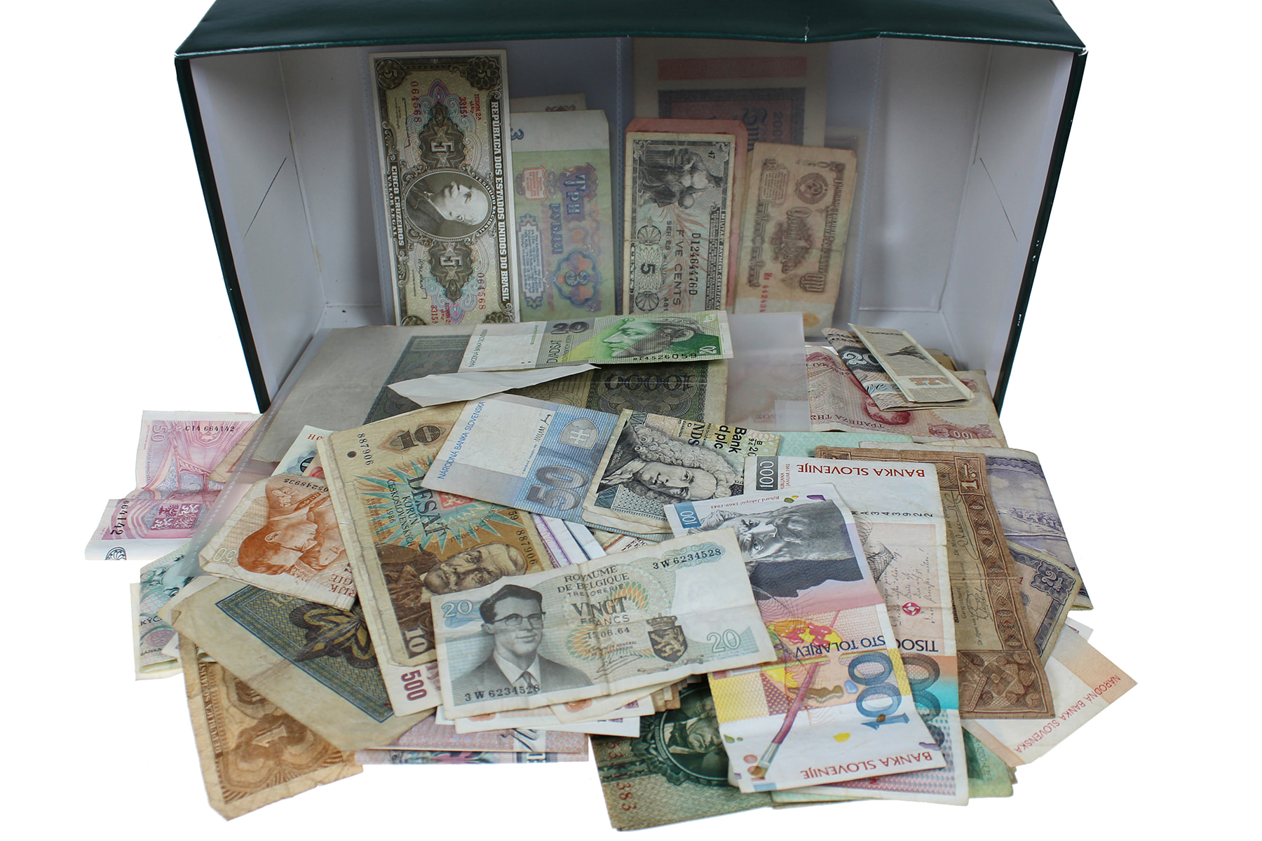 Jawel hoor! Ook in deze veiling weer zo’n doos vol onuitgezocht bankpapier wereld om desnoods de open haard mee aan te maken!