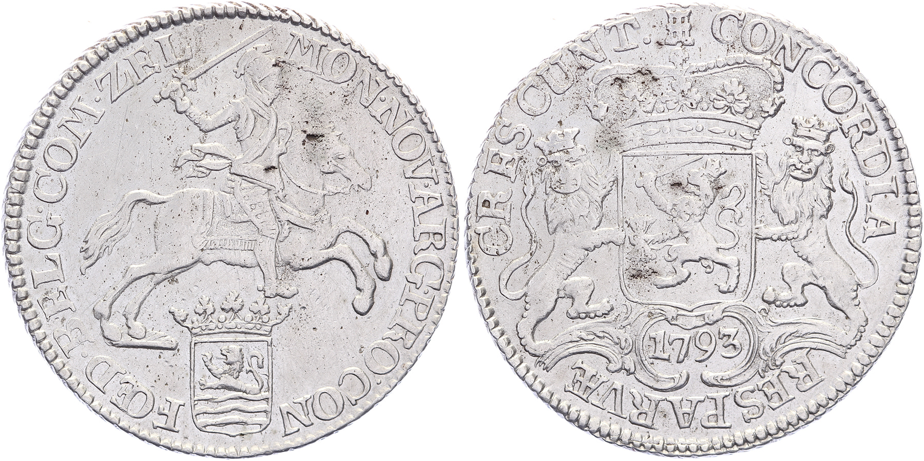 Rijder of dukaton 1793. Delm. 1028; CNM 2.49.58. Minimale gietgalletjes. Zeer fraai. ⁂Uit onze veiling 60, mei 2025, kavel 77