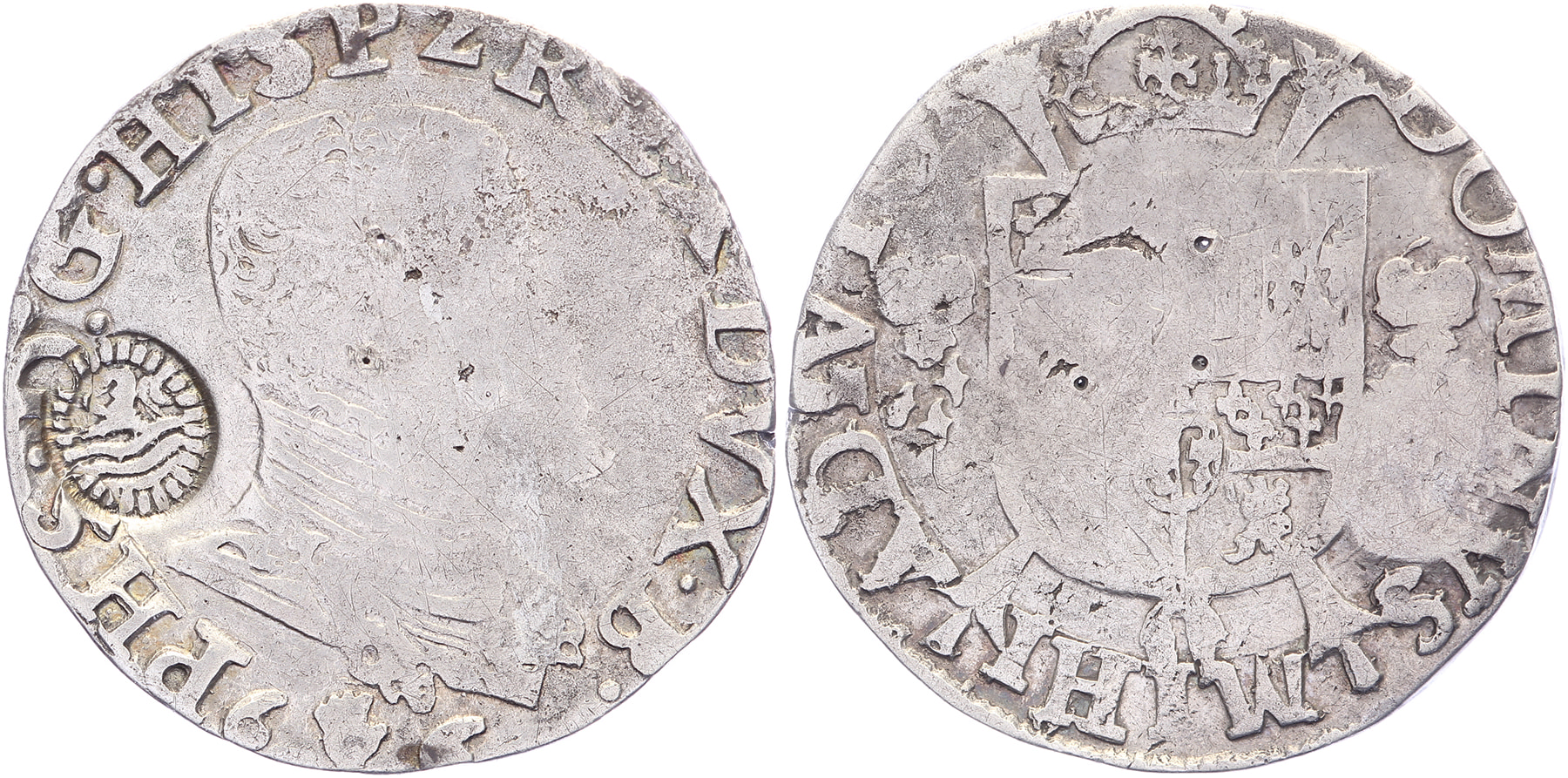 Klop A27.1 op 1/5 Philipsdaalder 1566 Antwerpen. Munt: fraai; klop: zeer fraai.