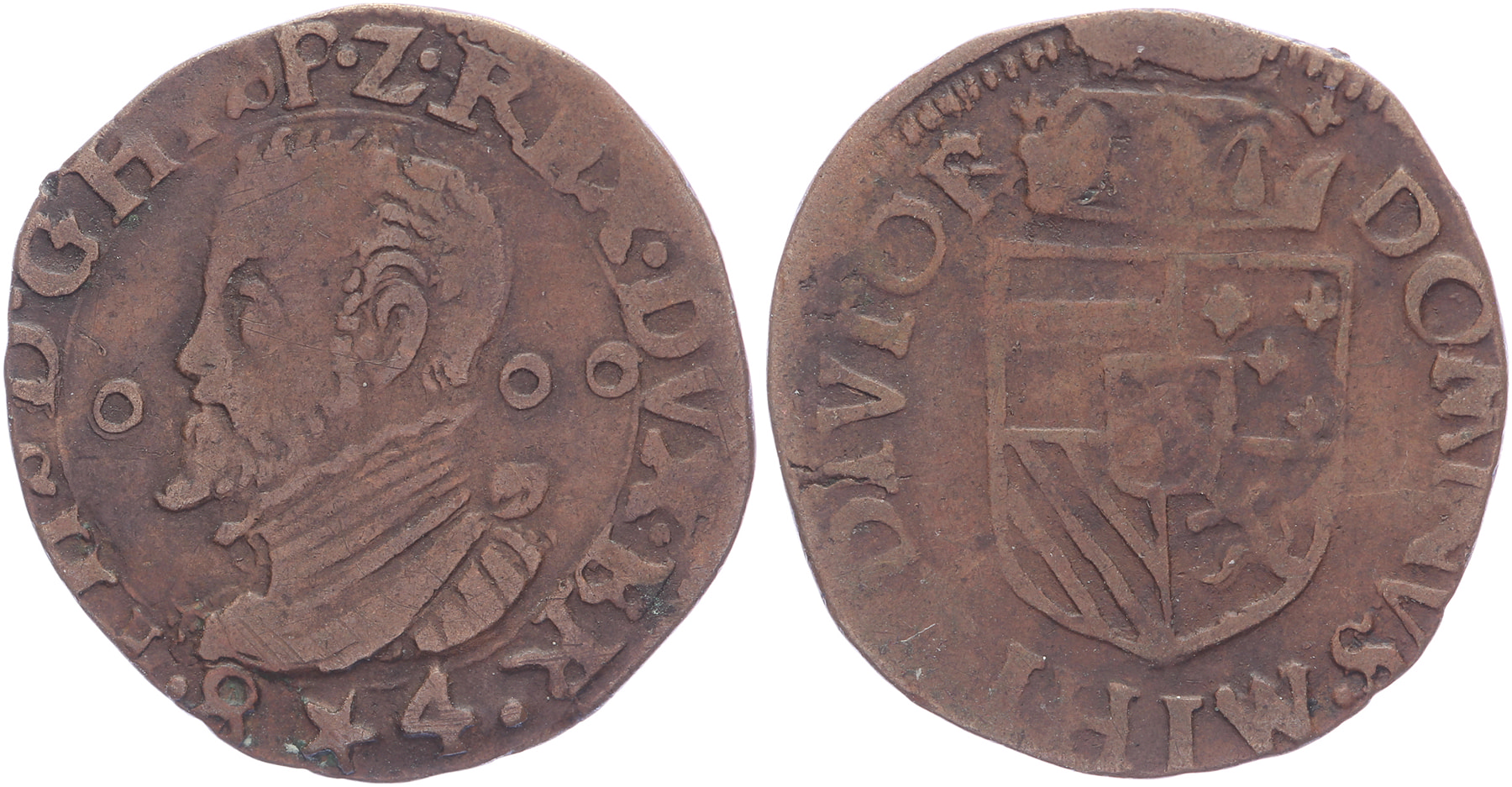 Lot (4) Duit 1584, 1593 (2x) en 1596, Maastricht. GH 233-2; PW 9306; CNM 2.07.29. Gemiddeld fraai / Zeer fraai. ⁂