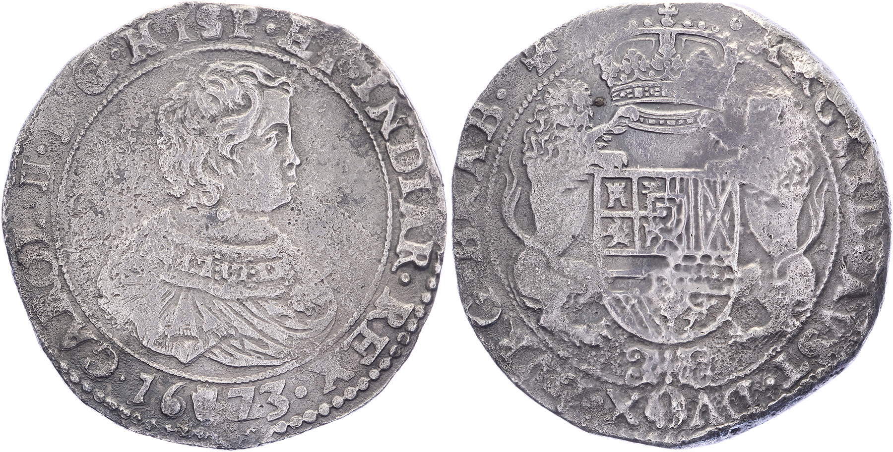 Dukaton 1673, Antwerpen. GH 348-1a. Aangetast, anders zeer fraai. ⁂