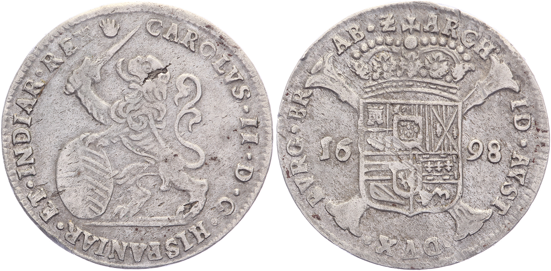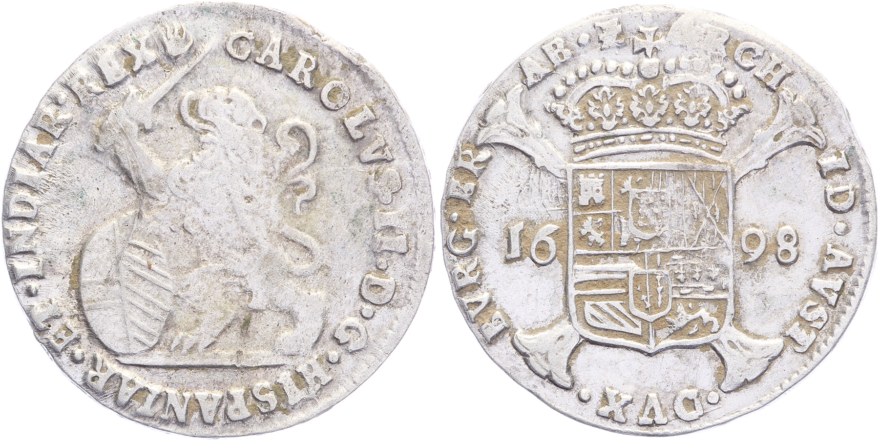 Lot (2) Leeuwenschelling 1698, Antwerpen. GH 352-1a; KM 119.1. Fraai / Zeer fraai. ⁂