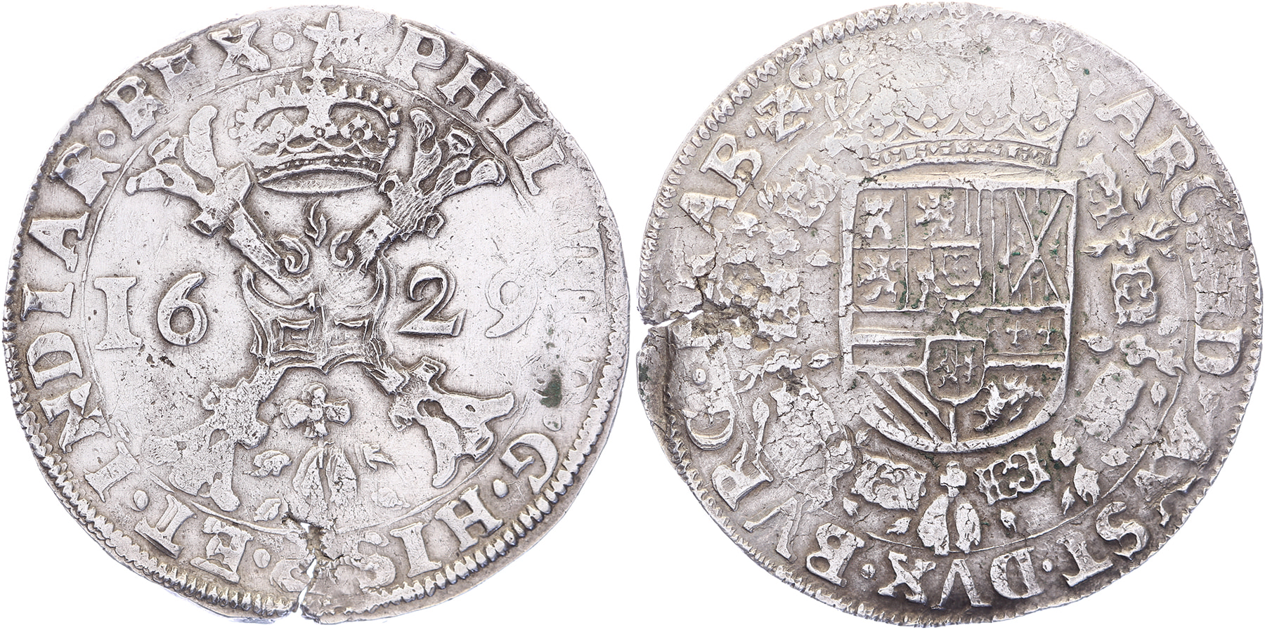 Patagon 1629. GH 329-2, Delm. 294 (R1); Vanhoudt 645 (R1); CNM 2.07.64. Zeldzaam (R). Slagbarst. Fr. / Zfr. ⁂