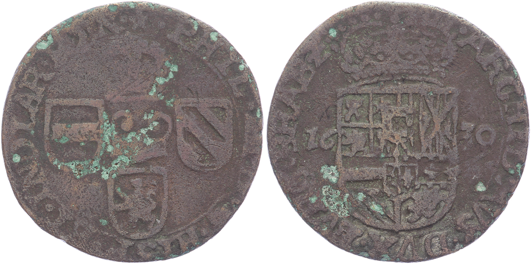 Oord 1630. GH 336-2; Vanhoudt 653 (R1); PW 9314 (R1); CNM 2.07.68. Groene aanslag. Fraai / Zeer fraai. ⁂
