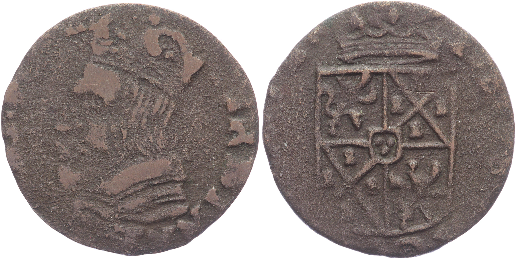 Oord z.j. voorzijde: gekroond portret naar links, keerzijde: gekroond, gekwartierd wapen. Lucas 79; Van Daalen 48; PW 9115; CNM 2.22.56. Ruim fraai. ⁂