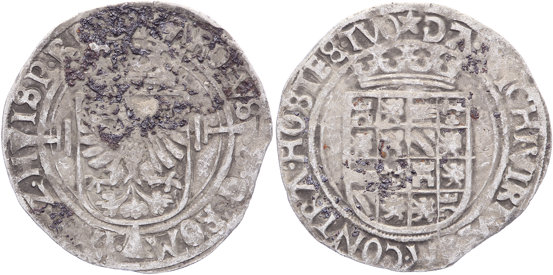 ½ Zilveren reaal z.j., tweede emissie. Interpunctie: punten. GH 191-2c; Vanhoudt 228. Aanslag voorzijde. Fraai / Zeer fraai. ⁂