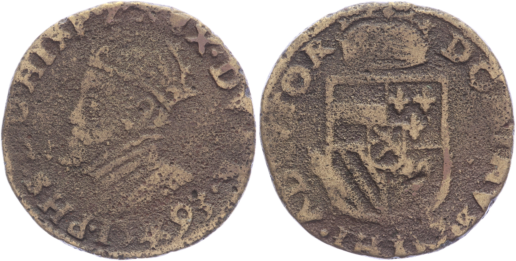 Oord 1593, messing GH 232-2; Vanhoudt 321-var (niet in messing); PW 9308 (niet in messing); CNM 2.07.28. Jaartal messing nog niet eerder vermeld. Zeer zeldzaam (RR). Ruim fraai. ⁂