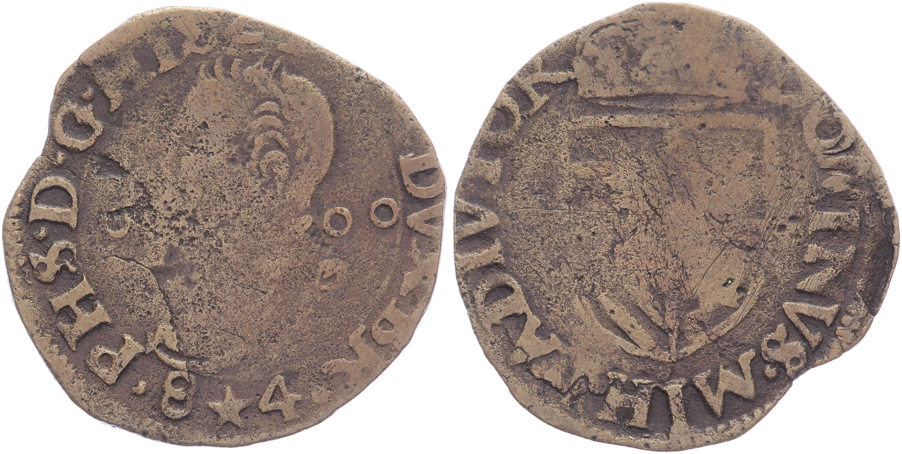 Duit 1584, met afgekort jaartal (8-4), met ringetjes naast portret 0-00. GH 233; Vanhoudt 326; PW 9306; CNM 2.07.29. Fraai. ⁂