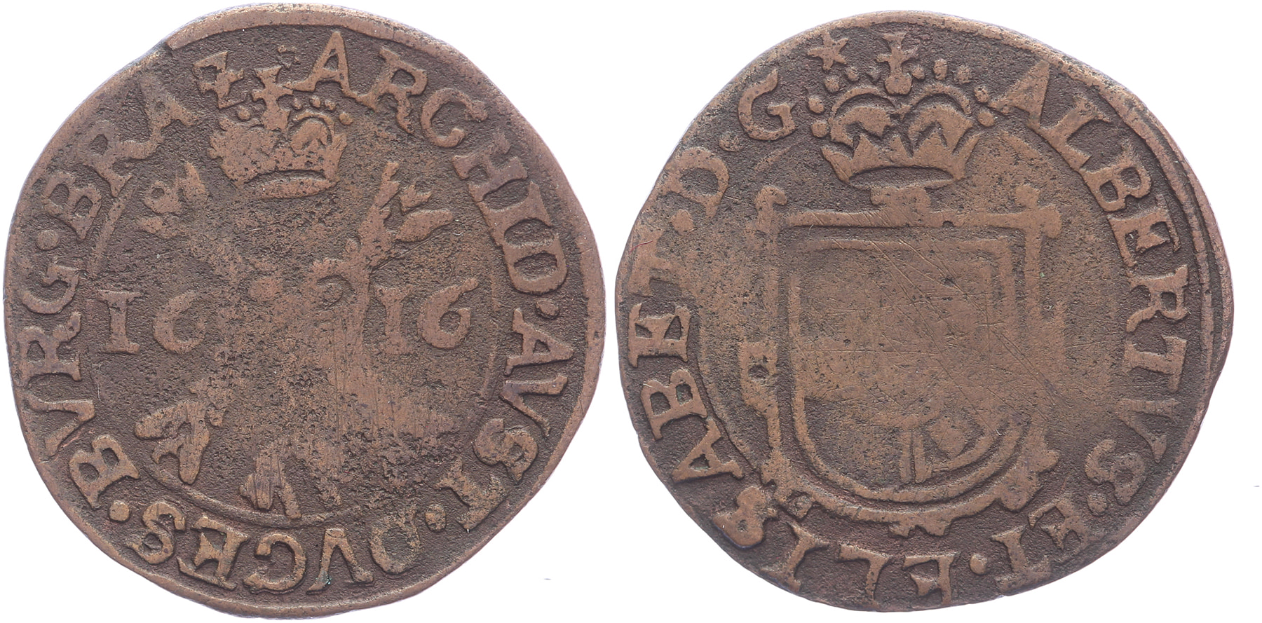 Duit 1616. GH 300-2; Vanhoudt 593 (R1); PW 9310 (R); CNM 2.07.59. Fraai / Zeer fraai. ⁂